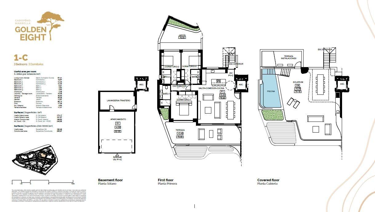 Bienvenido a Golden Eight, un enclave de lujo ubicado en la exclusiva zona de Artola, Cabopino, en la deslumbrante Costa del Sol. Este selecto complejo residencial está compuesto por solo 8 apartamentos, cada uno diseñado para brindar una experiencia de vida inigualable.~~Con una orientación suroeste que garantiza una exposición solar óptima y vistas panorámicas al mar Mediterráneo, Golden Eight ofrece una arquitectura innovadora y moderna que se fusiona perfectamente con la belleza natural circundante. La ubicación estratégica permite acceder en tan solo 5 minutos a las impresionantes dunas de Artola y disfrutar del prestigioso campo de golf de Cabopino para los apasionados del golf.~~Cada residencia en Golden Eight presenta un nivel de lujo sin igual, con terminaciones de la más alta calidad. La cocina, un verdadero centro culinario, cuenta con exquisitos acabados en roble y piedra natural, brindando un espacio elegante y funcional para satisfacer los gustos más exigentes.~~Esta vivienda que se ofrece, se distribuye de manera inteligente, ofreciendo un nivel en la planta baja con 3 espaciosos dormitorios y 3 baños para garantizar el máximo confort y privacidad. Además, la residencia incluye una terraza en la planta principal, donde se puede disfrutar del clima mediterráneo y las vistas asombrosas.~~Pero la verdadera joya de este apartamento en concreto, se encuentra en la planta alta, donde un extenso solárium se despliega ofreciendo una piscina privada, áreas de barbacoa y espacios de relajación. Desde este oasis privado se pueden admirar vistas despejadas al mar, creando el escenario perfecto para momentos inolvidables.~~~Para su comodidad y exclusividad, cada vivienda cuenta con un ascensor y un garaje en el sótano, asegurando un acceso directo y seguro a su residencia.~~Las plantas bajas cuentan con un enorme jardín donde se encuentra la piscina y la zona de relax con muchos metros de agradable césped~Hay 2 tipos de vivienda lós bajos muy grandes y espaciosos con su jardín y piscina privada y los áticos. ~~Golden Eight es más que una casa, es una experiencia de vida única. A solo 15 minutos de la elegante ciudad de Marbella y a 30 minutos del aeropuerto de Málaga, este es el lugar donde el lujo y la privacidad se unen para crear su hogar de ensueño en la Costa del Sol. ¿Está listo para vivir la vida en su máxima expresión en Golden Eight? ¡Contáctenos ahora y descubra el futuro de la vida de lujo!~