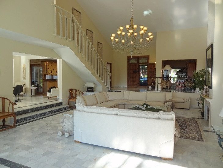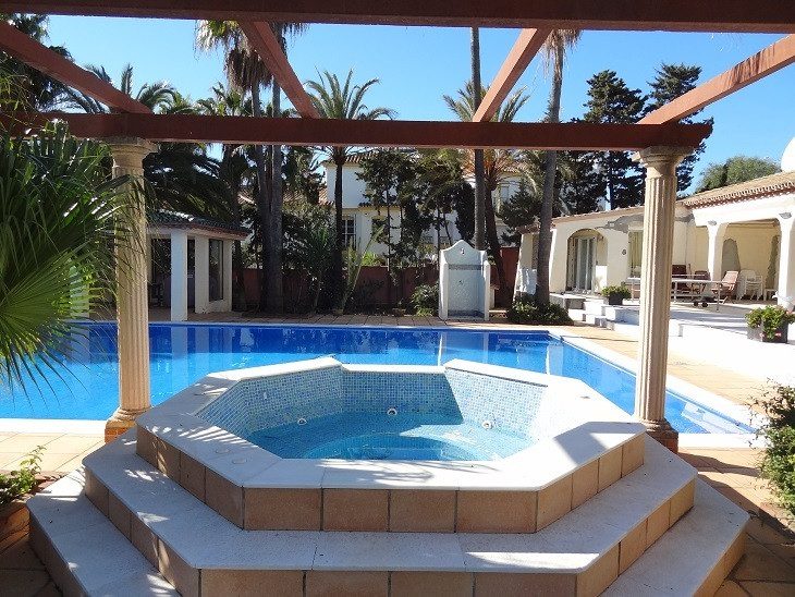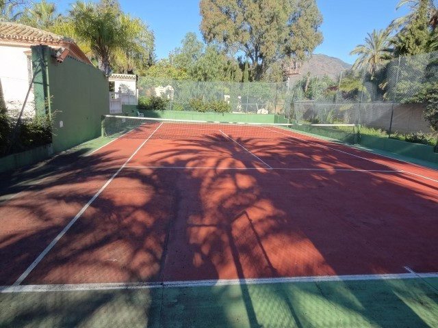 Dos parcelas ideal para el desarrollo de 2 nuevas villas frente a la playa además de la casa, o como una magnífica playa urbanización con gran jardín privado. Que antiguamente perteneció a un famoso actor de Hollywood y situado justo frente a la playa en 2 parcelas de casi 8500m2 de jardines de palmeras maduras no lejos de todas las comodidades en Estepona, esta gran propiedad ofrece maravillosas vistas al mar y su propia pista de tenis privada. También existe la posibilidad de subdividir el 2 parcelas para permitir la construcción de 4 villas en el sitio, incluyendo la actual casa, haciendo de este un excelente desarrollo / renovación oportunidad cerca del puerto de Estepona. La entrada de la propiedad ofrece un amplio garaje con suficiente aparcamiento y garaje doble, y en el interior del hall de entrada conduce directamente al salón espacioso con doble altura de techo que se abren hacia el jardín con vistas al mar. También hay una sala de juegos con televisión y mesa de billar y mesa de ping-pong, una moderna cocina, comedor y lavandería. La propiedad ofrece 5 dormitorios dobles y 6 baños privados, incluido el gran dormitorio principal en suite en la primera planta, con 2 cuartos de baño con ducha, sofá zona de estar y un amplio balcón privado con vista al mar, además de otros 4 dormitorios dobles en suite, 3 de las cuales han sido recientemente modernizado con baños de mármol travertino y decoradas por un diseñador de interiores con Villeroy y Boch de porcelana sanitaria. El 5º dormitorio es un gran jardín/piscina mirando habitación king size situado en el extremo opuesto de la villa para mayor privacidad. En el exterior hay un gran cascada 8 personJacuzzi en la enorme piscina de 20 metros (66 pies) de 8 metros (26 pies), rodeadas de mármol y terracota, terrazas y piscina refugio con una gran mesa de comedor, así como una cancha de tenis iluminada de tamaño completo. Una única propiedad frente al mar con acceso directo a la playa y a poca distancia a pie de todas las comodidades.~