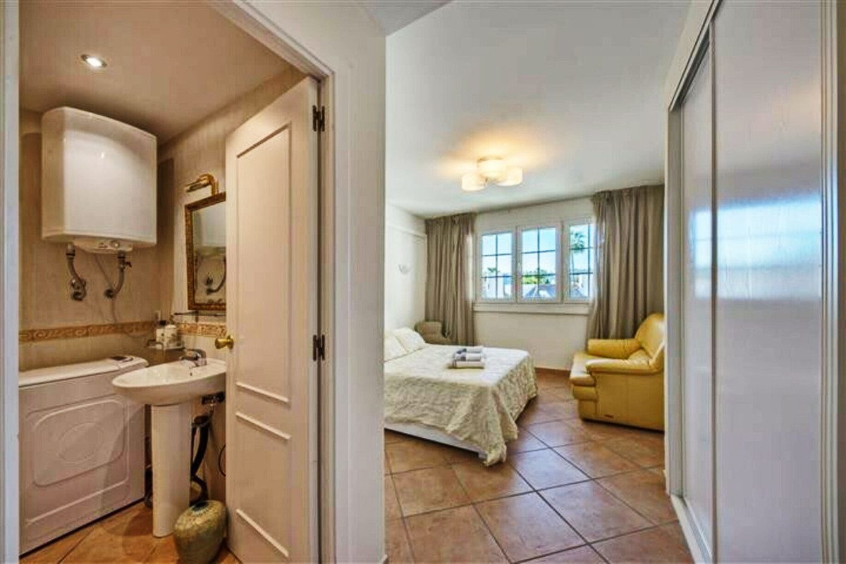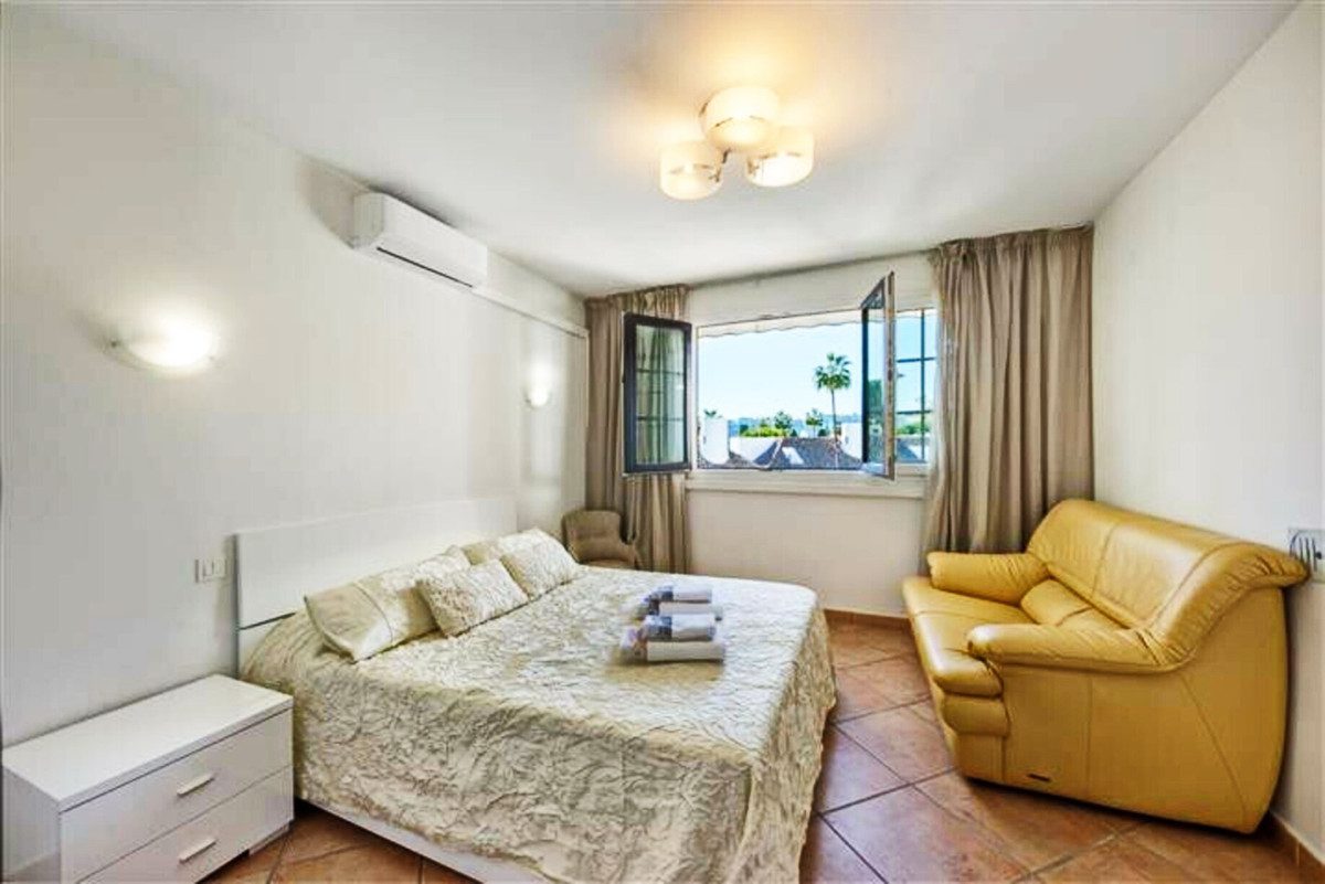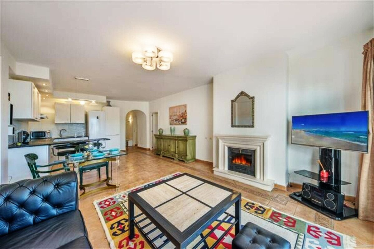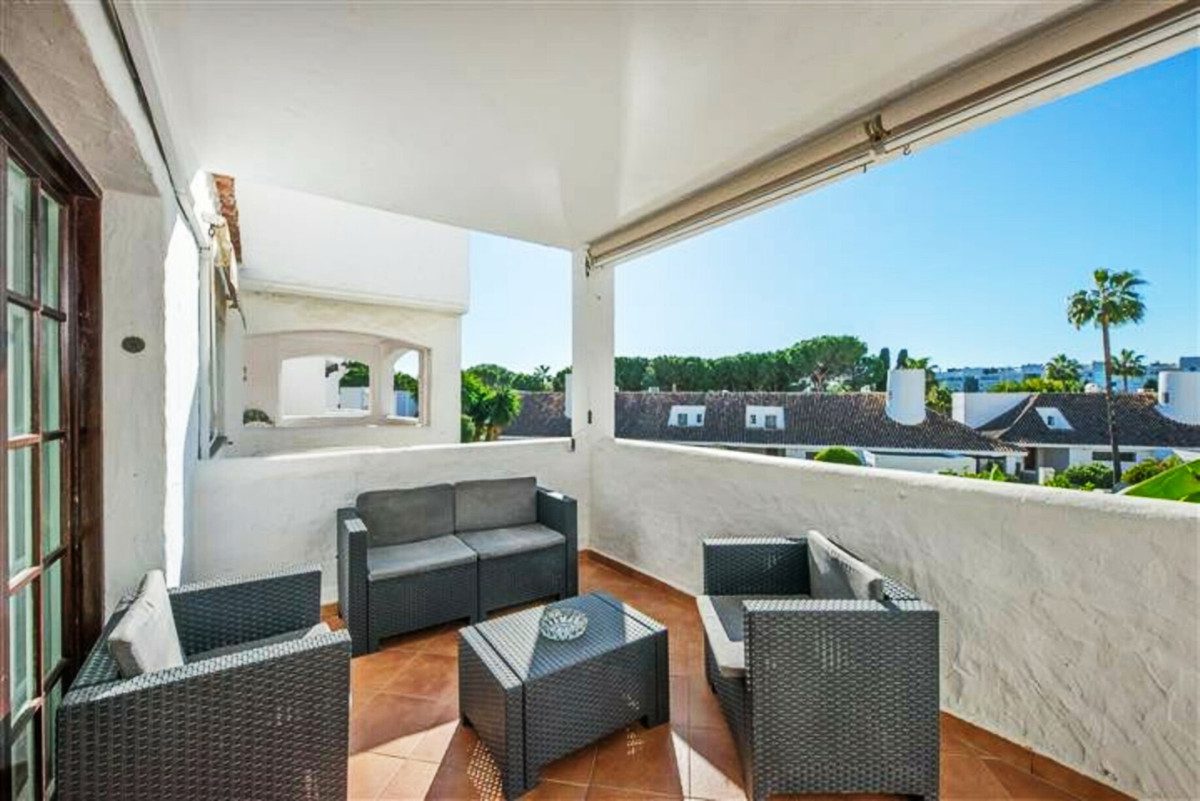 Amplio apartamento en Villa Marina, Puerto Banus. La propiedad ofrece cocina americana, salón/comedor con chimenea, con acceso directo a la terraza orientada al sur y con vistas a la piscina, dormitorio principal con su baño en suite, dos dormitorio de invitados con baño. Parking comunitario. Complejo cerrado situad al lado playa y todos tipo de servicios.~