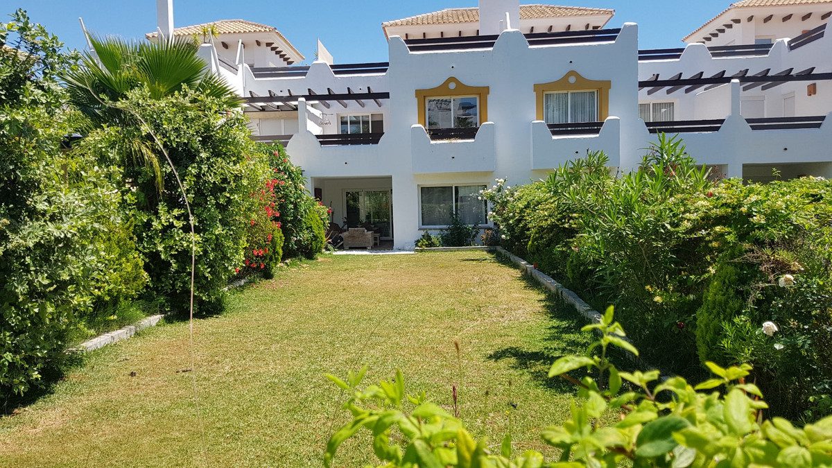 Magnífica casa adosada en Selwo, entre Estepona y Marbella, en una exclusiva urbanización cerrada, com seguridad las 24 horas, cámaras de vigiláncia, zonas ajardinadas, área de piscina y gimnasio. La casa es muy amplia y luminosa, y cuenta con 3 dormitorios, 2 baños, aseo, cocina equipada con zona de lavadero, salón, comedor, amplias terrazas, garaje y trastero.~