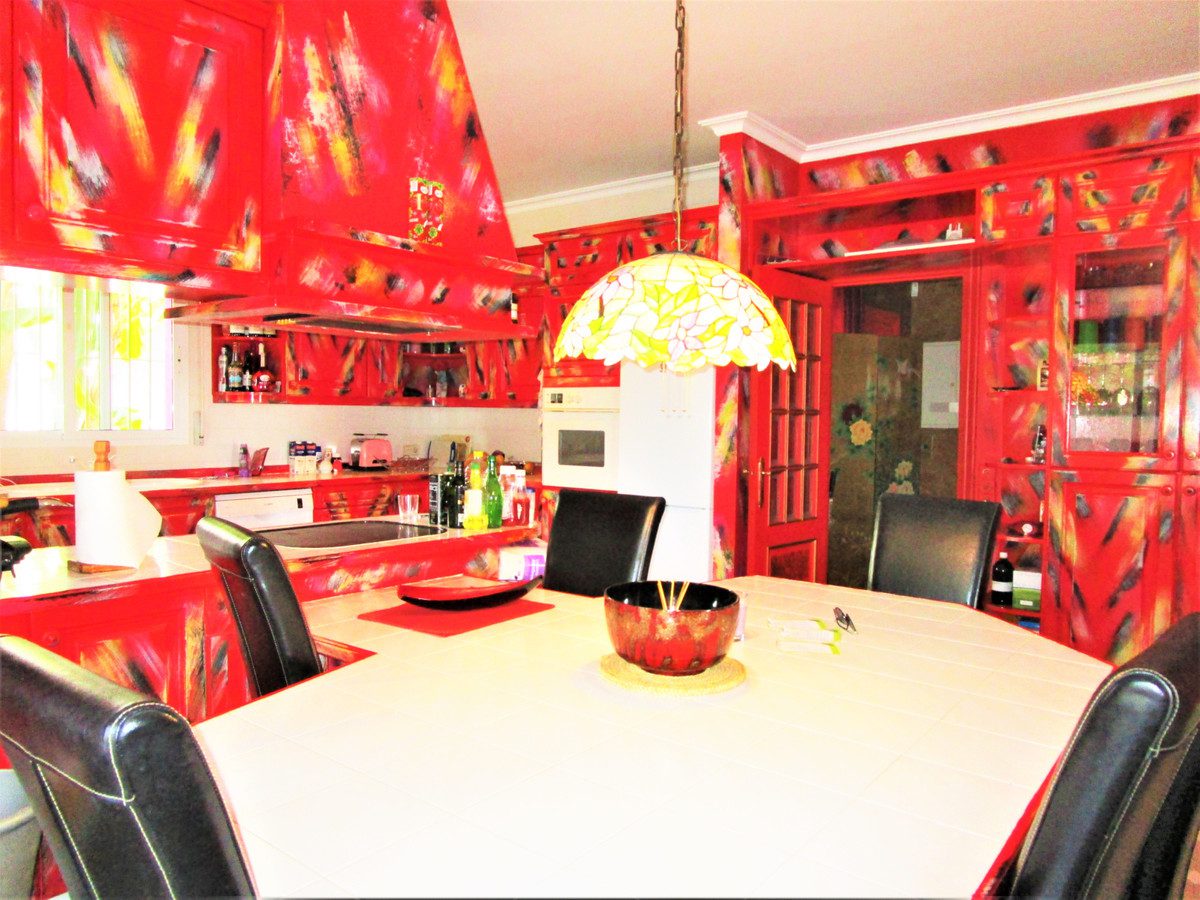 Magnifica villa con vistas panorámicas al mar y montaña desde el mismo salón debido a su estupenda localización a media altura en Elviria.Perfecta altura para disponer de estas maravillosas vistas y a la vez no muy lejos para ir andando a la playa.Villa con 3 dormitorios con sus respectivos baños en suite en la casa principal más un apartamento completo para servicio o invitados, totalmente independiente.La piscina con forma de lago es especialmente grande para lo que se ve en otras villas, y desde la misma se puede disfrutar de impresionantes atardeceres viendo como el sol se pone detrás de La Concha. Sierra de Marbella.La villa es muy particular y única en Elviria, tiene mucho potencial para reformarla y ampliarla con segunda planta o dejarla en el mismo estado.Dispone de plaza de aparcamiento para 4 coches.Oportunidad Única~