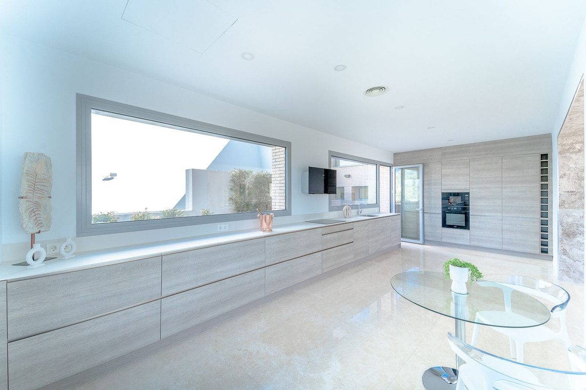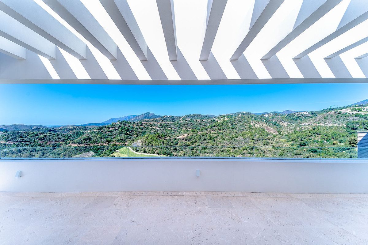 Villa contemporánea de nueva construcción, terminada en dos plantas más sótano más solárium, a las cuales se accede por ascensor y escalera. Se encuentra en un paraje natural, rodeada por golf y montaña, ofreciendo unas vistas abiertas muy agradables a los mismos, panorámicas al mar desde el solarium y buenas vistas al mar desde algunos puntos de la casa. Está equipada con espacios para acondicionar gimnasio, zona de spa, sala de cine y bodega. Es una vivienda muy amplia, con grandes espacios y construida con materiales de las mejores calidades, como por ejemplo solería de piedra natural y mármol travertino. El área es en la exclusiva urbanización Los Arqueros, en Benahavís, a pocos minutos de San Pedro Alcántara y Puerto Banús. Un entorno muy agradable, en medio de campos de golf, con vigilancia 24h y con una casa club que ofrece un golf de 18 hoyos diseñado por Severiano Ballesteros, club de tenis, bolera, restaurantes, tiendas y gimnasio.~