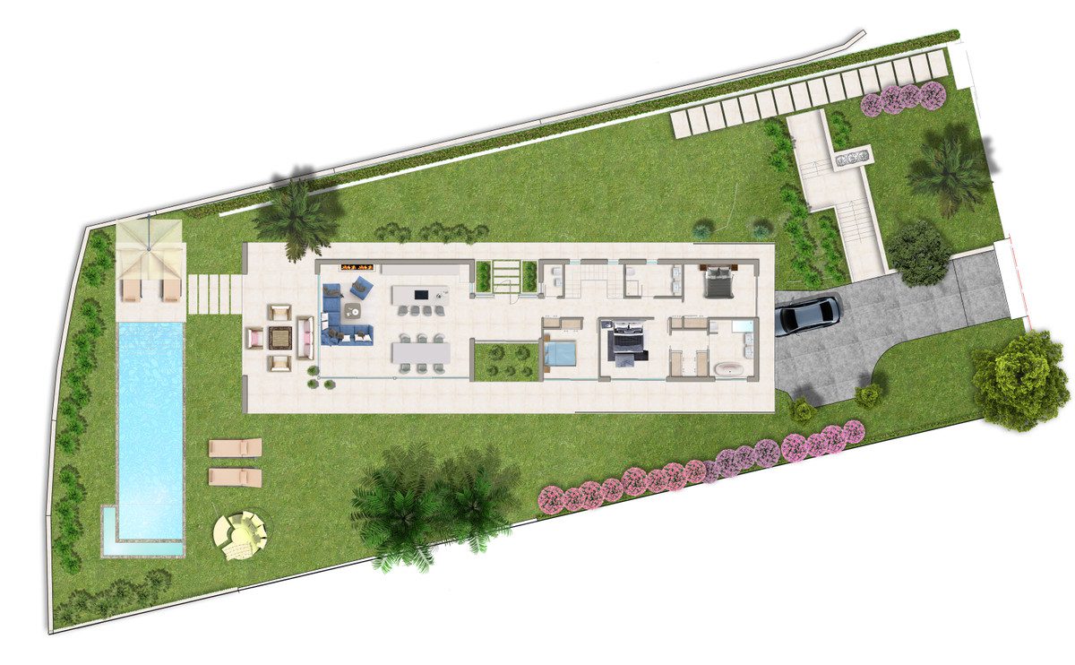 Villa Cala Golf 43 es una villa de lujo contemporánea situada en uno de los lugares más bellos y populares de la Costa del Sol – La Cala Golf Resort en La Cala de Mijas. Está a sólo 10 minutos de la playa, 20 minutos de Marbella y 30 minutos del aeropuerto de Málaga.Esta villa de alta calidad está cuidadosamente implantada en una gran parcela de 1486m2 maximizando su privacidad y garantizando las mejores vistas posibles sobre las verdes colinas de Mijas y al Mar Mediterráneo. Tiene una perfecta orientación suroeste.Esta villa unifamiliar independiente cuenta con 3 dormitorios, 2 baños, un amplio salón con una acogedora chimenea, una cocina abierta, totalmente equipada al más alto nivel, una sala multifuncional en el sótano que se puede utilizar como un estudio, un gimnasio, o un cine en casa o incluso un apartamento independiente y un garaje para 2 coches.Los grandes ventanales correderos del suelo al techo maximizan la cantidad de luz y realzan la vista del paisaje natural circundante. La conexión entre el espacio exterior y el interior es perfecta, con generosas terrazas cubiertas y descubiertas y una piscina infinita en la que podrá disfrutar al máximo de esas hermosas puestas de sol sobre el auténtico paisaje de Mijas.La villa 43 en La Cala Golf cuenta con un dormitorio principal con baño en suite y vestidor con increíbles vistas sobre las verdes colinas del campo andaluz y el mar Mediterráneo.~