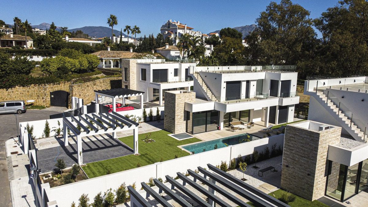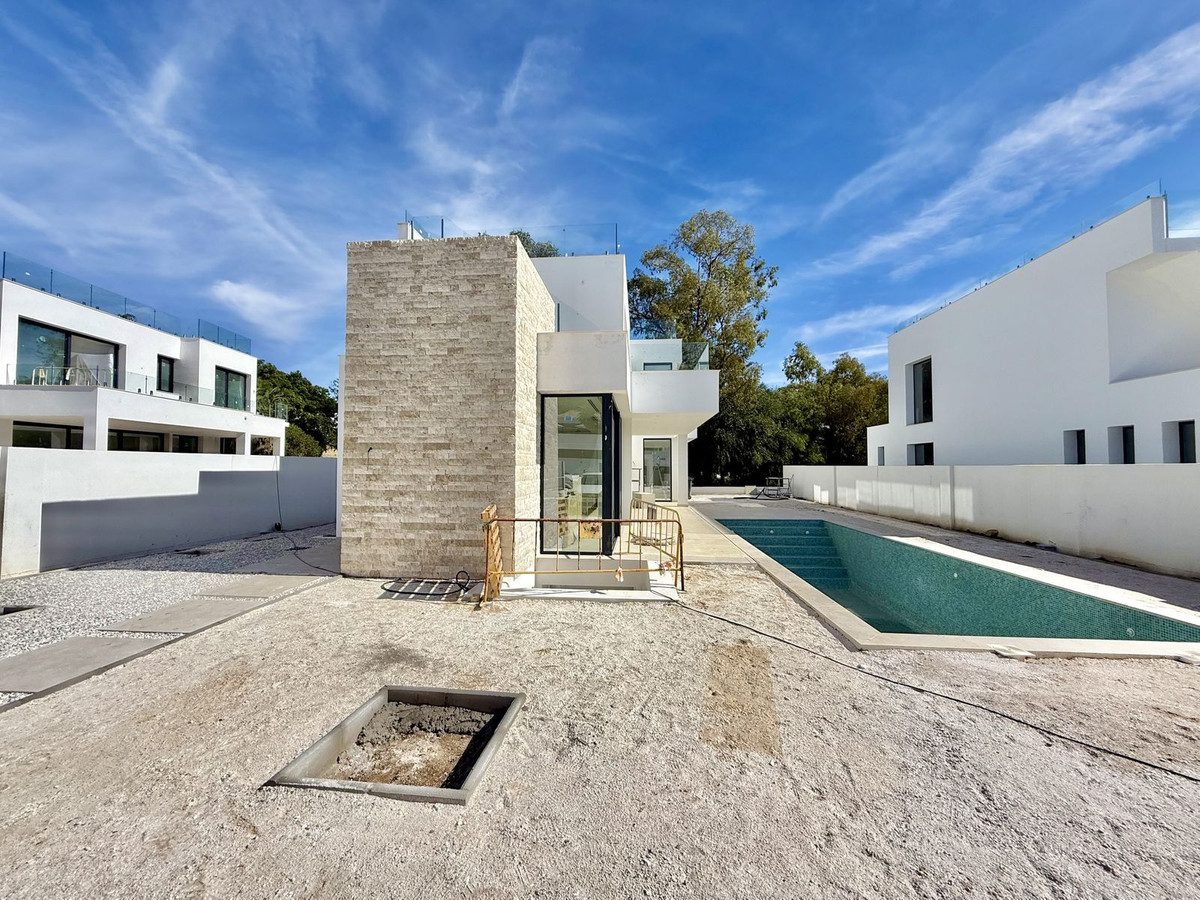 ¡BIENVENIDO A LA NUEVA PROMOCIÓN DE 3 VILLAS MODERNAS DE LUJO BORDEANDO LA NATURALEZA EN MONTE BIARRITZ, NUEVA ATALAYA, ESTEPONA!¡DESCUBRE NUESTRA VILLA DUNAS!Muchos de los nuevos clientes que descubren la Costa del Sol buscarán una ubicación tranquila, privada y familiar, que al mismo tiempo esté cerca de la naturaleza y a pocos minutos en coche de tiendas, escuelas, restaurantes y otros servicios. La zona de Monte Biarritz ofrece excelentes conexiones con Benahavis, San Pedro Alcántara, Estepona, Puerto Banús y Marbella ciudad en un radio de quince minutos.Nuestro proyecto de 3 nuevas villas modernas de calidad es la elección perfecta para estos recién llegados debido a su ubicación tranquila en una calle sin salida, su espacio habitable de planta abierta espacioso y bien organizado, sus 4 dormitorios en suite perfectamente equipados (1 de los dormitorios en el nivel inferior del sótano) y su acogedora zona privada de jardín/piscina…¡Todo esto, justo al borde del mundo natural!¡Todo ello, a sólo cinco minutos en coche de la playa, centros comerciales, restaurantes, colegios y campos de golf!EL DISEÑO:Las villas ofrecen una opción moderna de diseño arquitectónico con muchas soluciones de luz natural, que se adaptan perfectamente al barrio en permanente modernización y al entorno verde.LAS CUALIDADES:Los espacios interiores han sido cuidadosamente planificados para ofrecer comodidad y calidad a los nuevos propietarios. El foco principal se puso en el uso del conocido diseño innovador, características de alta tecnología y la inmejorable calidad de los materiales de quot;Porcelanosaquot;, que es hoy una importante referencia tanto en el mercado español como en el internacional.LOS ELECTRODOMÉSTICOS:Los electrodomésticos quot;Boschquot; no sólo se adaptan perfectamente a cualquier cocina, sino que el rendimiento y la fiabilidad de sus productos de alta calidad también complementan perfectamente las rutinas diarias de sus usuarios. Elegimos quot;Boschquot; por sus características y funciones, que hacen que cada día sea más fácil y agradable.EL CONFORT:Aunque tenemos uno de los mejores climas del mundo, los inviernos también pueden ser un poco fríos. Nuestras villas ofrecen una solución de calefacción por suelo radiante en toda la planta baja y en el primer piso, lo que crea una sensación invernal acogedora y sin esfuerzo y un lujo moderno innegable adicional a la casa de nuevo estilo.EL APARCAMIENTO:Debido a que el automóvil es una de las posesiones más preciadas de cualquier familia, mantenerlo seguro es una gran inversión. Por ello, optamos por instalar una marquesina para 2 coches como solución de aparcamiento. Consideramos que una cochera puede ser al mismo tiempo un complemento bonito y discreto para la propiedad.VILLA DUNAS:En la planta baja encontramos: un salón, comedor y cocina de planta abierta con terrazas al aire libre, un pequeño trastero, un baño de visitas y el dormitorio de invitados en suite con su terraza privada.La primera planta se distribuye en un dormitorio principal en suite con su amplia terraza privada y el segundo dormitorio de invitados con su propio baño y balcón.La planta cubierta ofrece una amplia zona de solárium con preinstalación de jacuzzi incorporado. Hay algunas vistas parciales al mar desde este nivel.El nivel del sótano de estas villas presenta un tercer dormitorio de invitados con una pequeña ventana de luz natural, gimnasio, sala de cine y trastero.Con piscina privada, jardín y garaje para 2 coches.~
