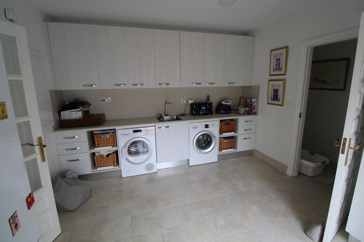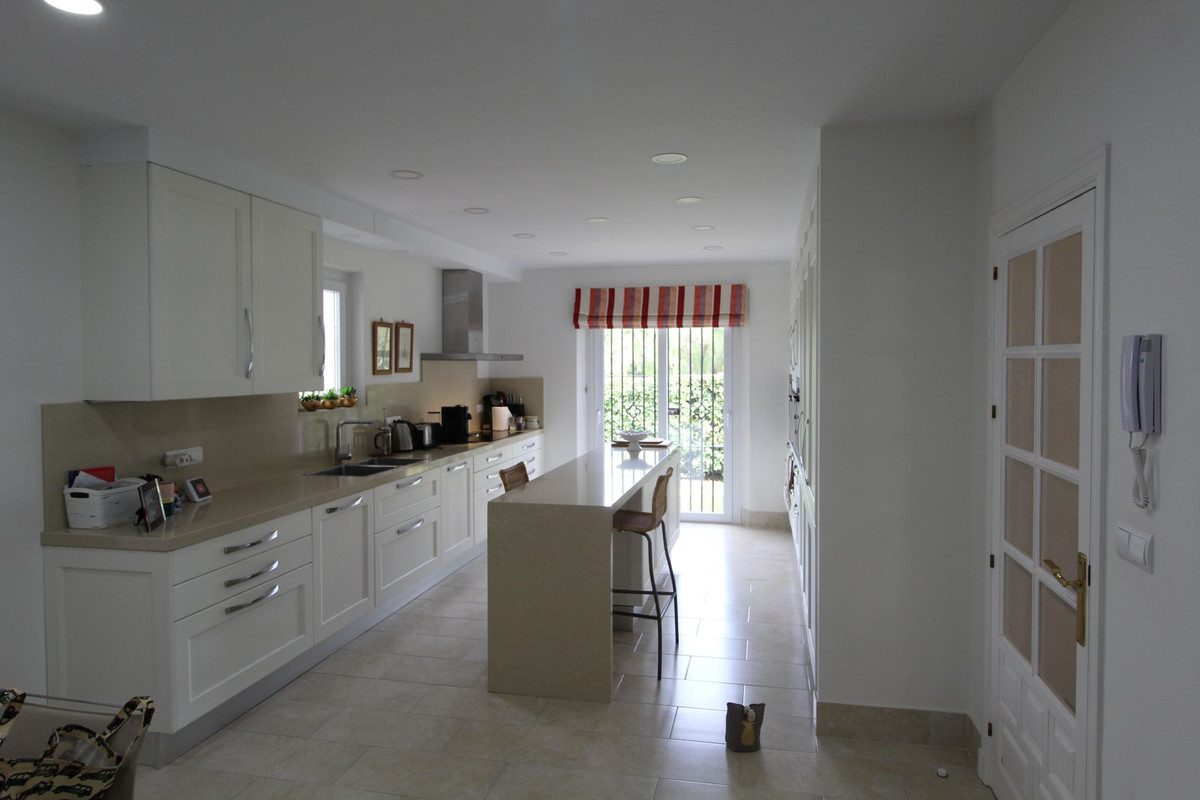 Lujosa villa de 5 dormitorios en muy buen estado en la zona E de Sotogrande Alto.La villa dispone de dos plantas mas un sotano. Aire acondicionado frío/calor y radiadores por toda la casa. En la planta baja se encuentra una amplia sala de estar con un comedor adyacente y chimenea, una enorme cocina totalmente equipada con despensa y acceso a la lavandería, 4 grandes dormitorios con baños en suite y una preciosa sala de té de estilo árabe con fabulosos azulejos y frisos nazaríes. Desde la sala de estar se puede acceder a una amplia terraza cubierta que sirve de comedor y zona de chillout que dan al jardín y la piscina. Junto a la piscina hay una zona de barbacoa con pergola y hamacas perfecta para el verano. En el sótano se encuentra el garaje con espacio para dos coches, un gimnasio y una gran habitación con sauna!En la planta superior se encuentra el fabuloso dormitorio principal, con vestidor, baño y una terraza privada.La villa se puede vender junto a la parcela adyacente, resultando en un terreno total de unos 5300 m2! Preciosos jardines con árboles muy bien cuidados en ambas parcelas. Precio total de villa + parcela adyacente = 2.300.000 €¡No se pierda esta oportunidad!~
