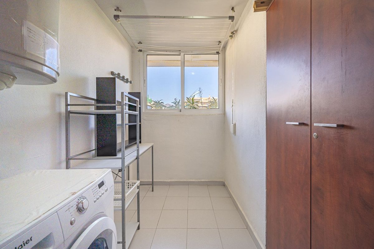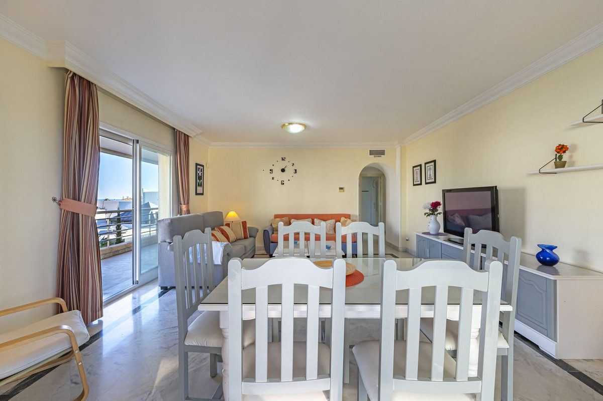 Presentamos este fabuloso piso de una ubicacion premium.Marina Banús es una urbanización en pleno centro de Puerto Banús, junto a todos los servicios, como puede ser El Corte Inglés. La urbanización tiene seguridad 24 horas, pista de pádel, piscina, gimnasio, espacio para dejar bicicleta.Es ideal para tu casa de vacaciones ya que no necesitarías coche para nada.La vivienda se distribuye en hall recibidor, cocina independiente totalmente equipada con electrodomésticos, salón-comedor con acceso a la terraza, 2 dormitorios y 2 cuartos de baño completos y una gran terraza con magnificas vistas a la ciudad y vistas parciales al mar.Incluido en el precio dos amplias plazas de garajeLa vivienda se ubica en Marina Banus en una excelente zona que cuenta con todos los servicios posibles.Gracias a su ubicación se encuentra muy próximo a todos los servicios y comercios como farmacias, colegios, supermercados, etc.No dude en venir a visitar esta magnífica propiedad.106m² interiores41m² terrazaIBI basura = 185,36€ / añoIBI piso = 1.305,15€ / añoIBI garaje = 102,54€ / añoComunidad piso = 181€ / mesComunidad garaje = 19€ / mes~