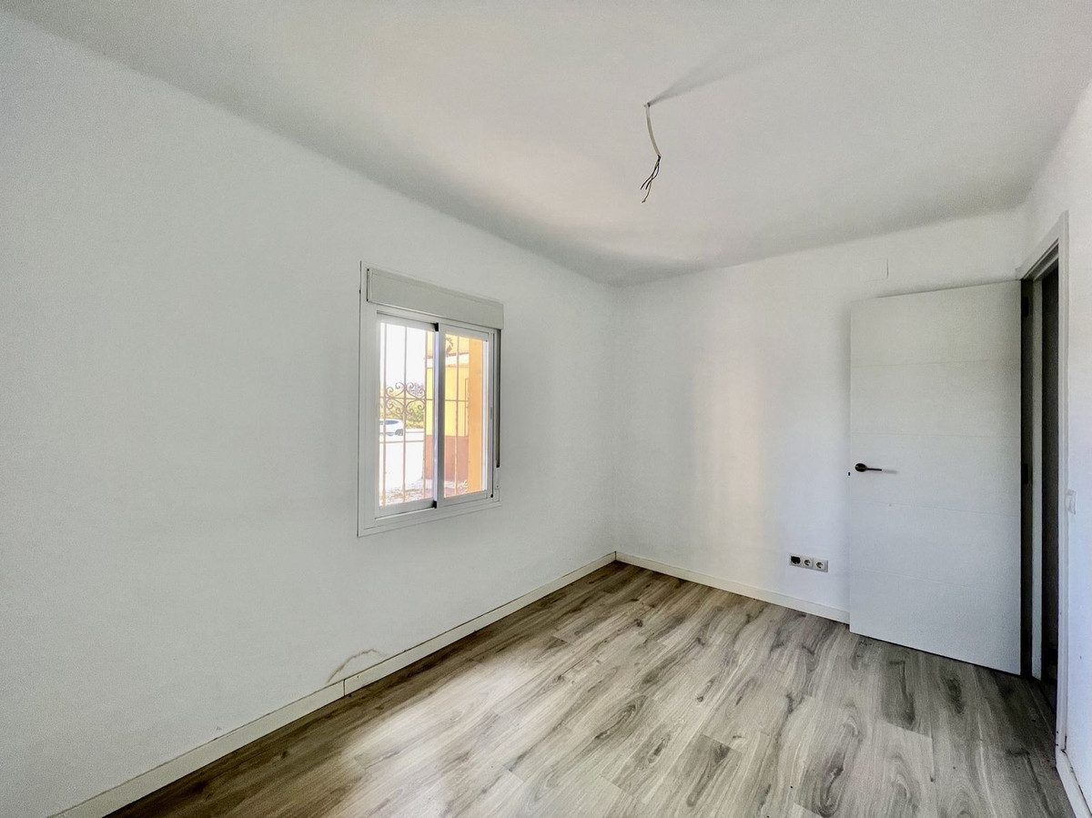 El apartamento esta ubicado en zona Dos Hermanas, la estación de tren Victoria Kent esta a 9 minutos andando, el Centro Historico de Malaga esta a 7 minutos en coche. Planta baja, edificio con ascensor.Un pasillo conduce a un salón de 9m2 y tres habitaciones de 9, 6 y 8m2. Baño 4m2. Cocina 4m2. Todas las ventanas dan al exterior.Supermercado Mercadona esta a 8 minutos a andando, colegio al 1 minuto a pie, museo Automovilístico a 12 minutos andando~