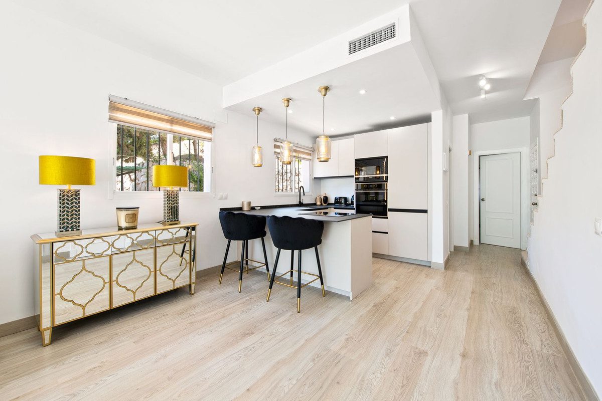Presentamos su refugio moderno perfecto: casa adosada contemporánea de dos dormitorios cerca del Aloha Golf ClubDescubra el epítome de la vida moderna en esta impresionante casa adosada de dos dormitorios, idealmente situada a pocos minutos del prestigioso Aloha Golf Club en la codiciada zona de Nueva Andalucía.Recientemente renovada a la perfección, esta casa adosada ofrece un interior elegante y con estilo con pisos nuevos, baños mejorados y una moderna cocina de planta abierta. Cada detalle ha sido meticulosamente elaborado para crear un espacio habitable cómodo y contemporáneo que rezuma lujo y sofisticación.Salga a la terraza orientada al sur y al jardín privado, donde podrá disfrutar del sol durante todo el día. Ya sea que esté disfrutando de un café por la mañana o organizando una barbacoa con amigos, este oasis al aire libre es el lugar perfecto para relajarse y disfrutar del hermoso clima mediterráneo.Ubicada dentro de un complejo cerrado, la casa ofrece lo máximo en privacidad y seguridad. El estacionamiento cubierto al lado de la casa brinda mayor comodidad, lo que garantiza un acceso sin problemas a su hogar en todo momento.Convenientemente ubicada, esta propiedad está a menos de cinco minutos en coche de Aloha y a poco menos de diez minutos de Puerto Banús, donde encontrará una gran variedad de tiendas, cafeterías, bares, restaurantes y el emblemático puerto deportivo. Ya sea que esté buscando experiencias de golf de clase mundial o una vibrante vida nocturna, todo lo que desea está a su alcance.No pierda la oportunidad de hacer de esta casa adosada contemporánea su propio pedazo de paraíso en Nueva Andalucía. Programe su visita hoy y embárquese en un viaje hacia una vida de lujo en la Costa del Sol.~