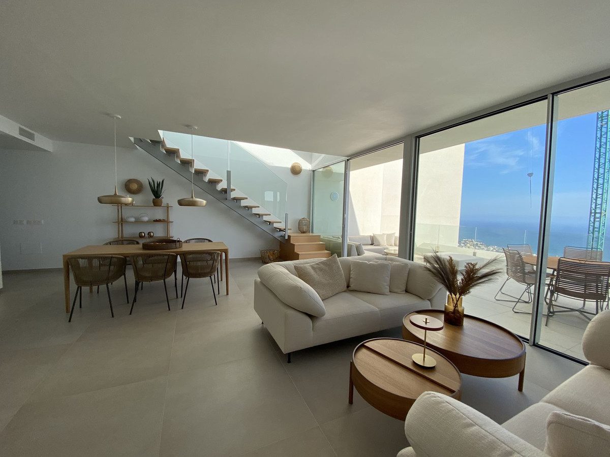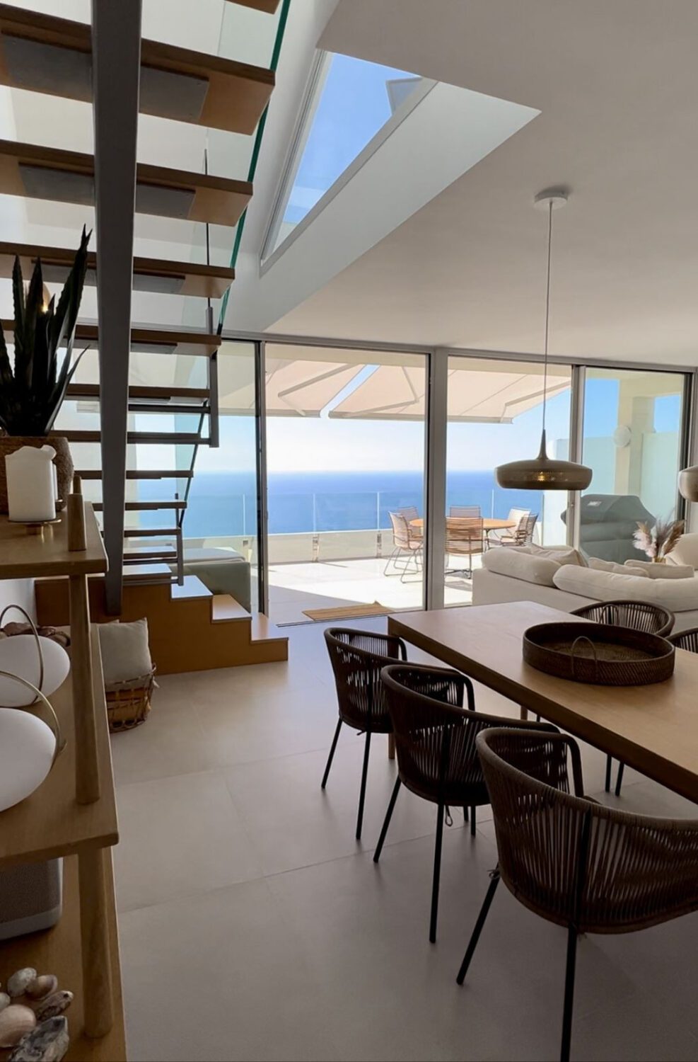 Ático de lujo (dúplex) – Vista panorámicaVive tus sueños en este lujoso ático dúplex de 3 dormitorios en una de las promociones de obra nueva más solicitadas de la costa. ¡Este ático dúplex es para el comprador que lo quiere todo!La mejor ubicación y una vista panorámica al mar absolutamente despejada con vistas a toda la línea de costa, incluida la bahía de Fuengirola. Es mágico aquí, no solo durante el día sino también por la noche con las luces de colores que brillan con la calidez de la ciudad de Fuengirola y sus alrededores. Este gran ático dúplex está orientado al sur y ofrece dos amplias terrazas privadas con mucho espacio para socializar con amigos y familiares en el salón al aire libre, el comedor y la zona de barbacoa o desde la zona chill out con tumbonas, desde donde podrá disfrutar del sol. todo el día. El ático consta de entrada y pasillo y 2 amplios dormitorios de invitados con armarios empotrados y persianas eléctricas. Desde las habitaciones de invitados se accede a un pasillo con baño de invitados y una cocina y sala de estar de planta abierta con ventanas corredizas de piso a techo que conducen a la gran terraza de la planta baja. Arriba, obtienes un gran dormitorio principal (una suite de lujo de hotel que se siente como …) con armario empotrado / vestidor. El dormitorio principal, por un lado, conduce a una terraza privada y, por el otro lado, al hermoso y amplio baño principal. Además este ático está equipado con los mejores materiales y electrodomésticos de alta calidad y totalmente amueblado y equipado con electrodomésticos de Siemens. El ático viene también con suelo radiante completo, con aire acondicionado frío y calor integrado con Airzone, videoportero y preinstalación de sistema de alarma e incluye dos plazas de aparcamiento (aparcamiento subterráneo) y un trastero. Como propietario de este ático de primer nivel, también puede disfrutar de 2 piscinas al aire libre, 1 piscina cubierta, spa, saunas y gimnasio, varios ascensores y una zona comercial a la vuelta de la esquina, a poca distancia del centro comercial Altos del Higuerón y Benalmádena Pueblo. Aeropuerto de Málaga en las proximidades a muy poca distancia en coche.~