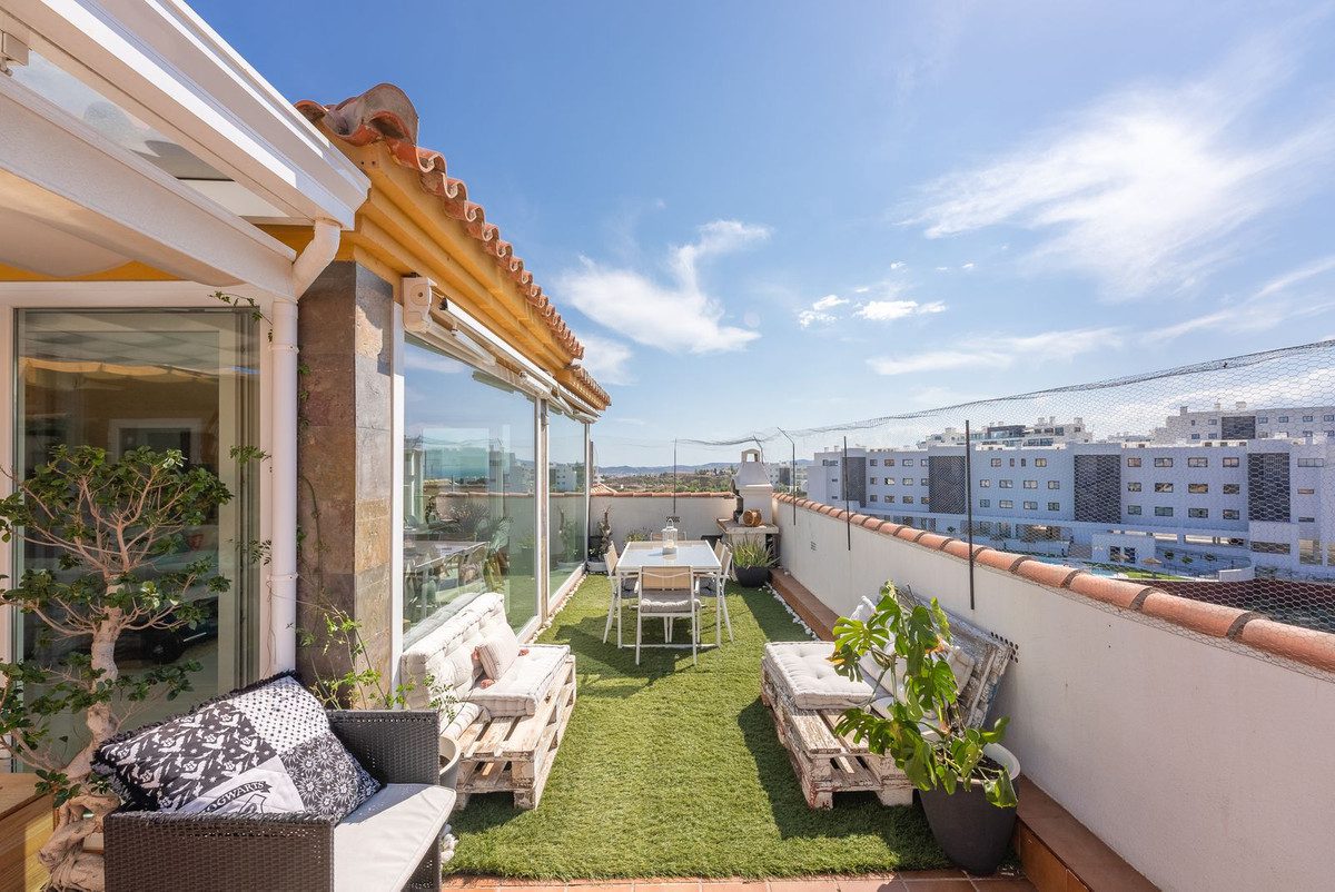 Ático moderno reformado, orientación sur-sur/oeste, ubicado en la exclusiva urbanización Reserva del Higuerón. Consta de hall de entrada, 3 dormitorios y 2 baños, suelos de madera en todo el apartamento, amplio salón comedor con grandes ventanales de cristal, cocina americana totalmente amueblada y equipada con electrodomésticos. Todos los dormitorios con armarios empotrados y acceso a la terraza. Dormitorio principal con baño en suite y walk-in closet. 136m2 de terraza con vistas panorámicas al mar Mediterráneo ya la Bahía de Fuengirola. Incluye una plaza de parking y trastero.Espectaculares zonas comunes, con dos grandes piscinas, amplias zonas verdes y un lago artificial.~