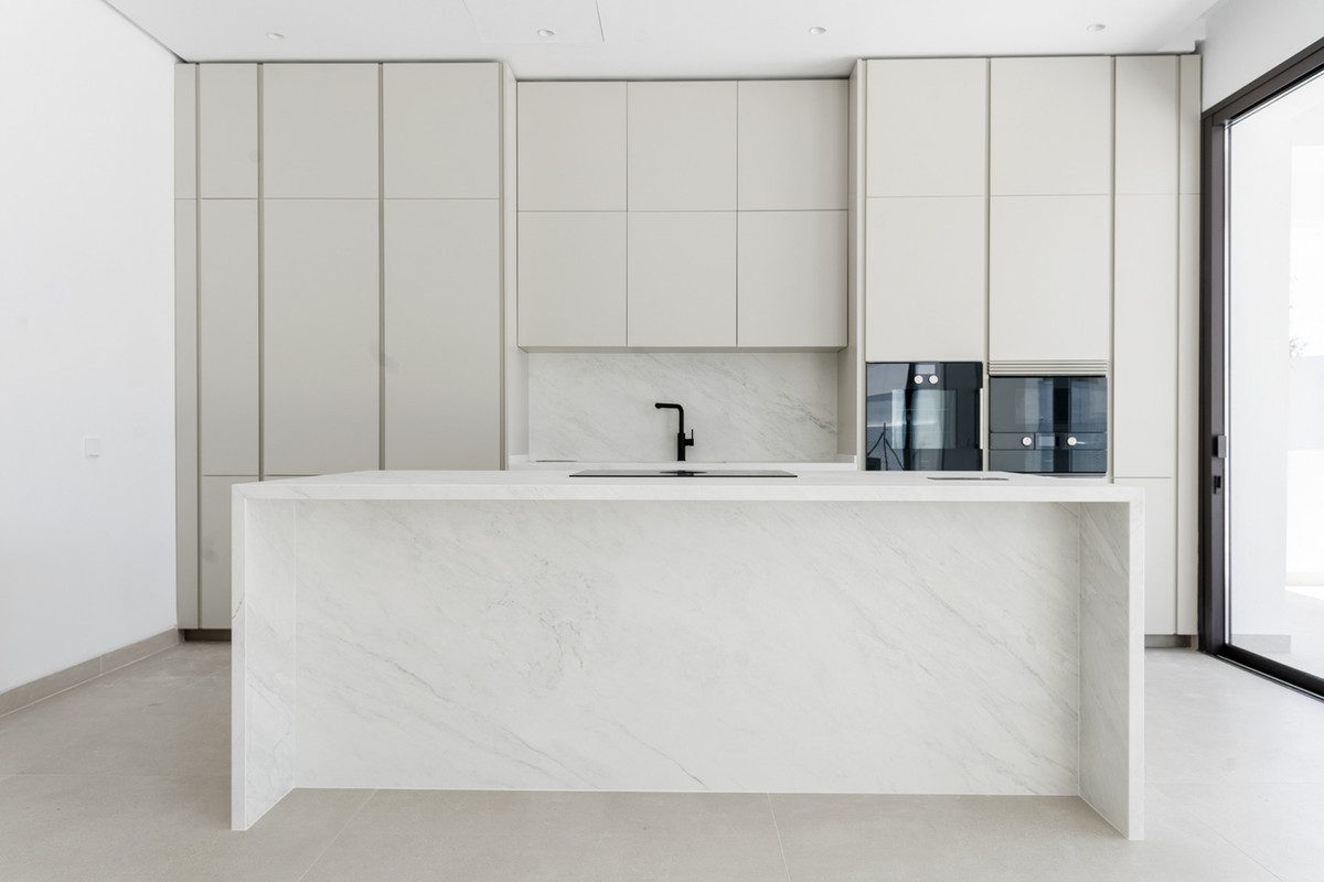 Moderna villa de lujo con cualidades excepcionales, ubicada en una comunidad cerrada compuesta por solo 15 villas. La comunidad cuenta con guardias de seguridad las 24 horas y servicios de conserjería, y se encuentra en un oasis verde en el borde de la famosa Milla de Oro, a pocos metros de la playa y a pocos minutos a pie del casco antiguo.La villa está construida en una parcela de 885m2 y tiene una superficie habitable total de 730m2. Cuenta con una amplia terraza de 225m2 y ofrece 4 dormitorios y 5 baños. En su interior, se encuentra un espacioso salón, una cocina americana equipada con muebles y electrodomésticos de la más alta calidad. Además, la villa cuenta con un ascensor privado que conecta cada nivel de la propiedad, un cine, sauna y hammam, y calefacción por suelo radiante.En la azotea, hay un solarium que ofrece hermosas vistas al mar. La villa también incluye un garaje privado para 2 coches y 2 plazas de aparcamiento adicionales.Tanto el jardín como la piscina de la villa son mantenidos centralmente por la comunidad, lo que brinda un estilo de vida sin preocupaciones.La construcción de la villa está completada, lo que significa que está lista para ser habitada y disfrutada por sus propietarios.~