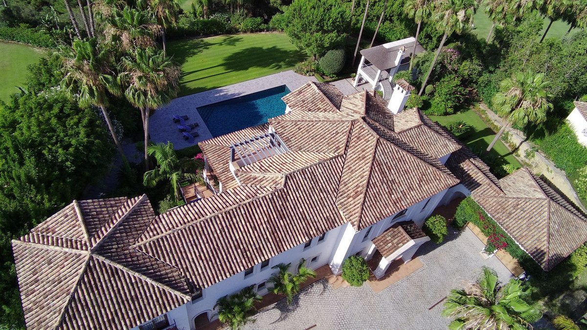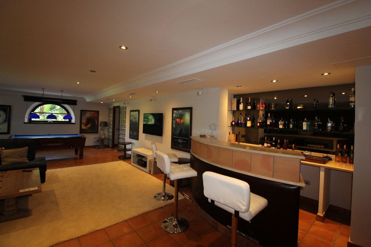 Excelente villa clásica de 6 dormitorios en un entorno idílico, situada en primera línea de Almenara Golf con impresionantes vistas panorámicas de los campos de golf Almenara y San Roque Club.Esta villa impecablemente mantenida se extiende a lo largo de tres plantas, mostrando una combinación de elegancia atemporal y sofisticación moderna. Las características impresionantes de esta notable propiedad incluyen:- Gran entrada de adoquines, que ofrece un amplio espacio para varios vehículos, complementada por un estacionamiento para dos coches y un garaje para dos coches.- Seis dormitorios lujosamente decorados.- Una encantadora sala social, exquisitamente amueblada con un bar de primera categoría, mesa de billar, dardos y una acogedora área de estar, que ofrece el ambiente perfecto para recibir a los invitados.- Amplia sala de cine.- Piscina exterior climatizada, recientemente renovada, con hermosos revestimientos y efectos de iluminación.- Un magnífico poolhouse con dos niveles, diseñado cuidadosamente para facilitar reuniones al aire libre, completo con área de barbacoa.- Terrazas privadas que acompañan a los tres dormitorios principales en la planta superior, ofreciendo impresionantes vistas panorámicas y baños en suite.- Adornada con un próspero huerto de aguacates y una variedad de árboles frutales.- Con una extensión de 3422 metros cuadrados, la villa abarca una generosa parcela que ofrece amplio espacio para diversas actividades al aire libre.- Impecables suelos de mármol.- Aire acondicionado frío/calor y calefacción por suelo radiante que abarca toda la villa.Enclavada en la codiciada zona F de Sotogrande, esta excepcional propiedad ofrece un estilo de vida verdaderamente envidiable, caracterizado por la tranquilidad y el lujo. A pesar de su encanto aislado, la villa se encuentra convenientemente ubicada a poca distancia en coche de una variedad de servicios, campos de golf y actividades recreativas. La prestigiosa Escuela Internacional de Sotogrande también se encuentra en las cercanías.Experimenta el epítome de la vida refinada en esta extraordinaria villa, donde la elegancia atemporal se encuentra con la opulencia contemporánea.~