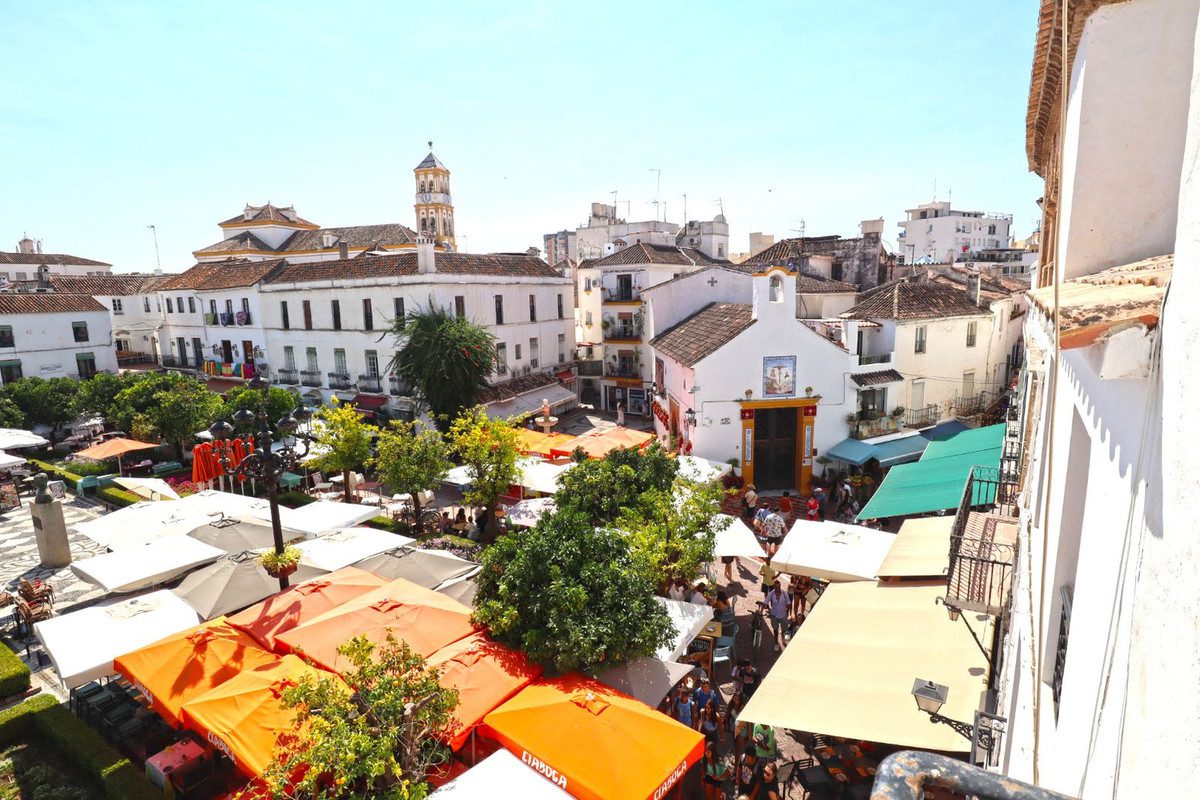Oportunidad única e irrepetible de compra. Se vende exclusivo apartamento elegantemente amueblado, situado en el centro histórico de Marbella y con maravillosas vistas a su emblemática Plaza de Los Naranjos y a la Ermita de Santiago, la más antigua de la ciudad. Tiene su acceso por la concurrida calle de La Estación y sus encantadoras tiendas. Formado por la unión de 2 propiedades en segunda planta, dispone de todo el carácter de una casa típica del casco antiguo y a su vez con muchos detalles y lujosamente amueblada. La propiedad consta de hall de entrada, distribuidor con armarios empotrados, amplia cocina totalmente amueblada y equipada, gran salón comedor con salida a 3 balcones con maravillosas vistas a la Plaza de Los Naranjos, 2 dormitorios y 2 cuartos de baño, uno de ellos en suite. Almacén de 10 m2 incluido en el precio. Aire acondicionado frío y calor en todas las habitaciones. Una verdadera joya para los amantes del casco antiguo de Marbella y sus rincones.~