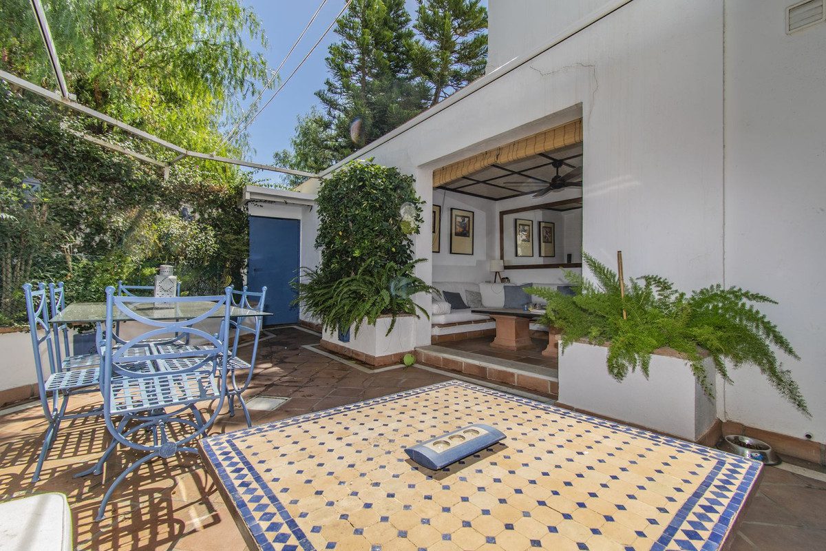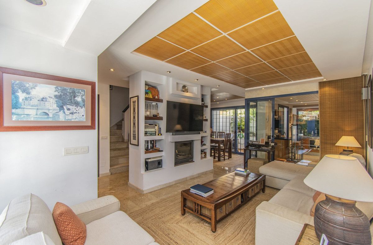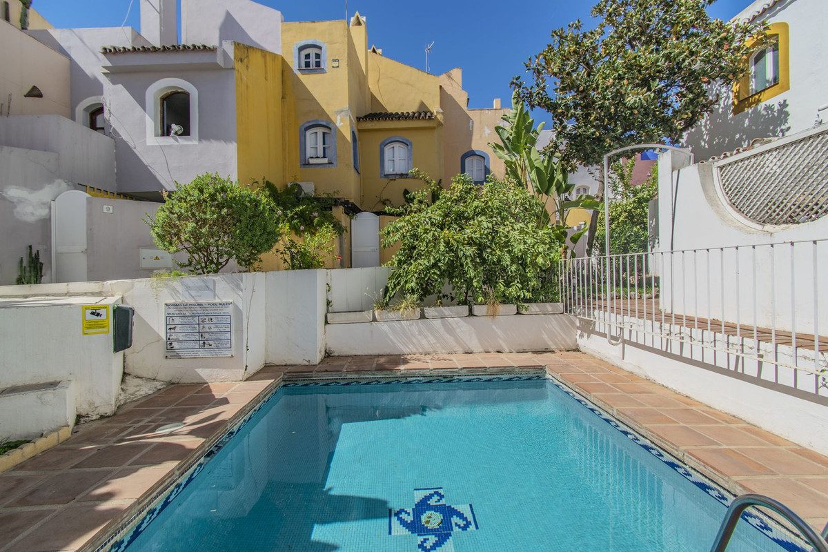 ELEGANTE CASA JUNTO A PUERTO BANUSAcogedora y elegante casa adosada, ubicada en la parte baja de Nueva Andalucía a sólo unos minutos de Puerto Banus, todo tipo de servicios y rodeada de los mejores campos de golf.La propiedad está distribuida en tres alturas y cuenta con un salón con chimenea con zona de comedor, cocina, aseo y zona de porche y terraza en la planta baja.La primera planta dispone de tres dormtitorios y dos cuartos de baño. La planta superior cuenta con un cuarto dormitorio con baño en suite y zona de solárium.La propiedad cuenta con plaza de garaje privado y zona de parking.Establecido dentro de una pintoresca urbanización de estilo Mediterráneo con varias piscinas comunitarias.Una propiedad ideal, para los clientes que quieran disfrutar de una acogedora casa familiar a sólo unos minutos de Puerto Banus.~