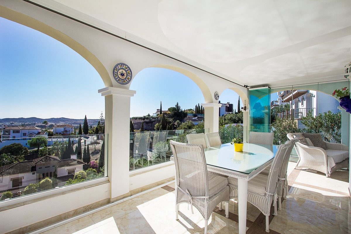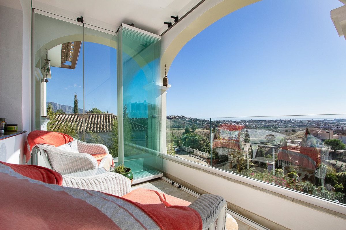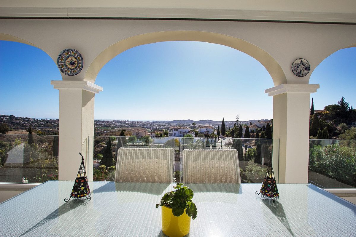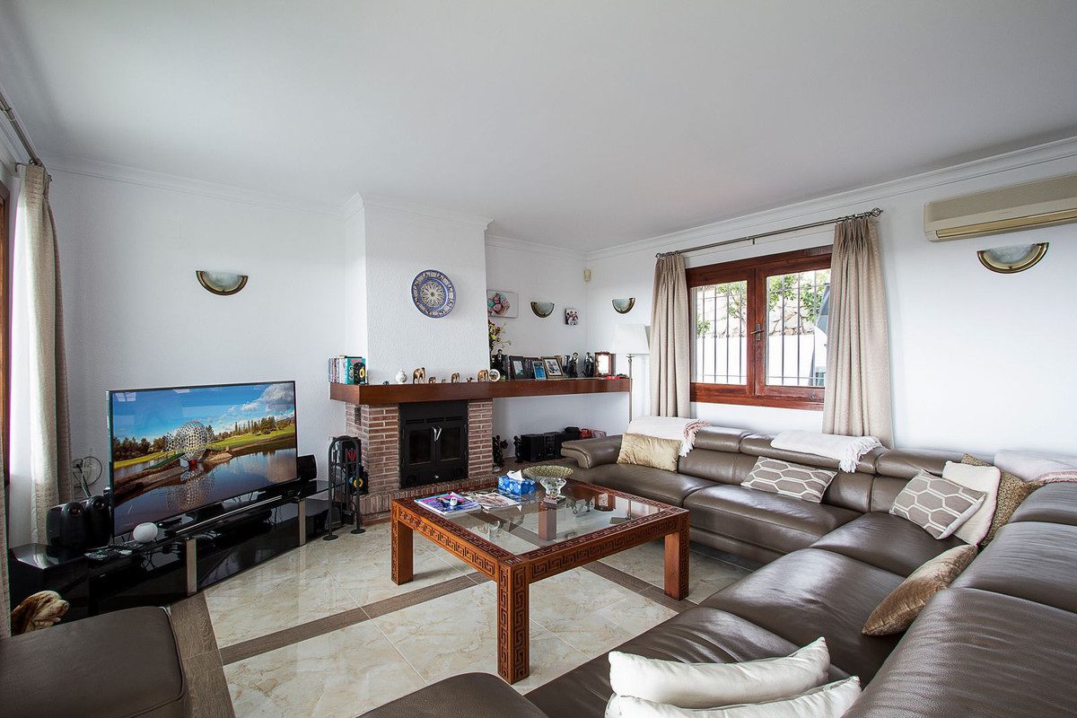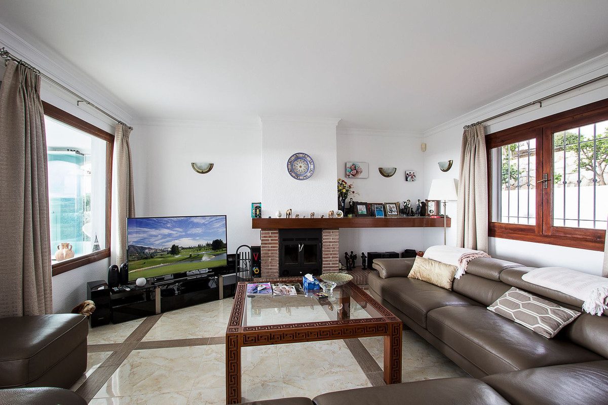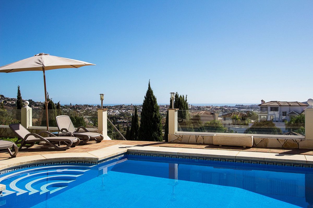 Esta magnífica villa está ubicada en la zona residencial de Mijas Golf y goza de una vista espectacular. La propiedad ofrece un entorno de vida único en la Costa del Sol, con habitaciones espaciosas y cómodos espacios exteriores, perfectos para relajarse o disfrutar de momentos en familia o con amigos.En el nivel principal, encontrarás una amplia sala de estar con comedor, una cocina equipada y un aseo para invitados. La sala de estar se abre a una amplia terraza que ofrece una vista impresionante que se extiende hasta el mar. En el nivel inferior, se encuentran las tres habitaciones excepcionalmente espaciosas. La habitación principal tiene su propio baño, mientras que las otras dos comparten un segundo baño. Una práctica lavandería incluye una lavadora y generosos espacios de almacenamiento.Las terrazas y el jardín son igualmente acogedores y perfectos para disfrutar del clima soleado de la Costa del Sol. La piscina y el espacio que la rodea son ideales para barbacoas entre amigos. Incluso se ha acondicionado un pequeño pool house que es en realidad un estudio independiente con cocina, parte salón con sofá-cama y TV, baño y aire acondicionado.Mijas Golf es una zona residencial de renombre que alberga dos campos de golf de calidad y el prestigioso hotel 5* quot;La Zambraquot; del grupo Hyatt, garantizando un entorno seguro y tranquilo.~