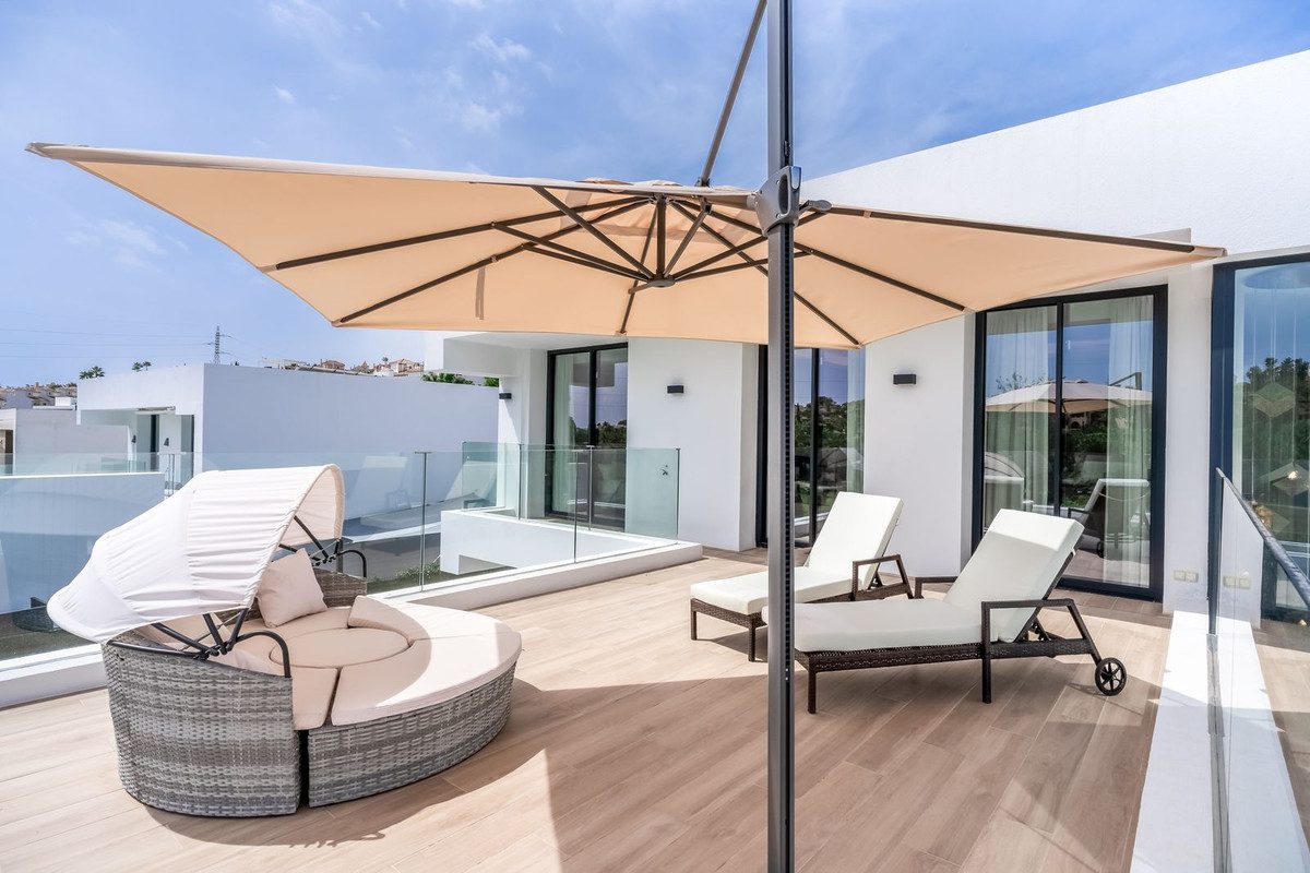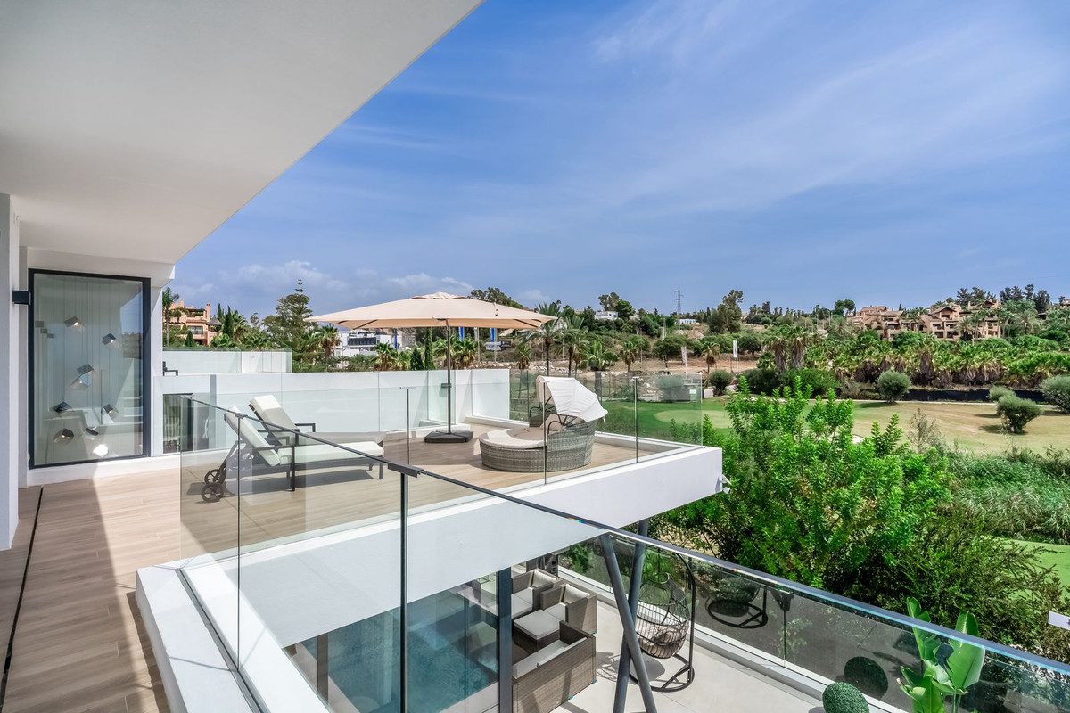 Presentamos su oasis moderno: villa de nueva construcción en primera línea de golf El CampanarioUbicada en la prestigiosa comunidad de El Campanario, esta moderna villa de nueva construcción ofrece lo último en vida de lujo, con impresionantes vistas del campo de golf y más allá. Con cinco dormitorios y cuatro baños y medio, esta propiedad está diseñada para impresionar, con cada detalle cuidadosamente seleccionado para crear un refugio de estilo y sofisticación.Ingrese para descubrir una espaciosa sala de estar con cocina de planta abierta, que fluye perfectamente hacia la terraza, donde podrá disfrutar de las impresionantes vistas del campo de golf y la piscina. Perfecto para entretenimiento tanto en el interior como en el exterior, este espacio seguramente será el corazón del hogar, donde se crearán recuerdos preciados con familiares y amigos.La propiedad cuenta con espacio de estacionamiento para tres autos, aire acondicionado Daikin para el máximo confort, paneles solares para eficiencia energética y calefacción por suelo radiante en toda la villa, lo que garantiza comodidad y una vida de lujo durante todo el año.Para entretenerse, diríjase al área del sótano, donde encontrará un salón completo con un televisor de 75 pulgadas, el lugar perfecto para relajarse y disfrutar de noches de cine con sus seres queridos.Convenientemente ubicado junto a la casa club de El Campanario, los residentes disfrutan de acceso a una variedad de comodidades, que incluyen un spa, gimnasio, campo de golf y restaurante. Además, las tiendas locales, bares, restaurantes y una parada de autobús se encuentran a poca distancia, lo que ofrece lo último en comodidad y estilo de vida.Con el centro de Marbella a sólo 15 minutos, Puerto Banús y Estepona a sólo 10 minutos, y tiendas y restaurantes a sólo 3 minutos a pie, esta propiedad ofrece el equilibrio perfecto entre tranquilidad y accesibilidad. No pierda la oportunidad de hacer suyo este oasis moderno: programe su visita hoy y experimente una vida de lujo en su máxima expresión.~