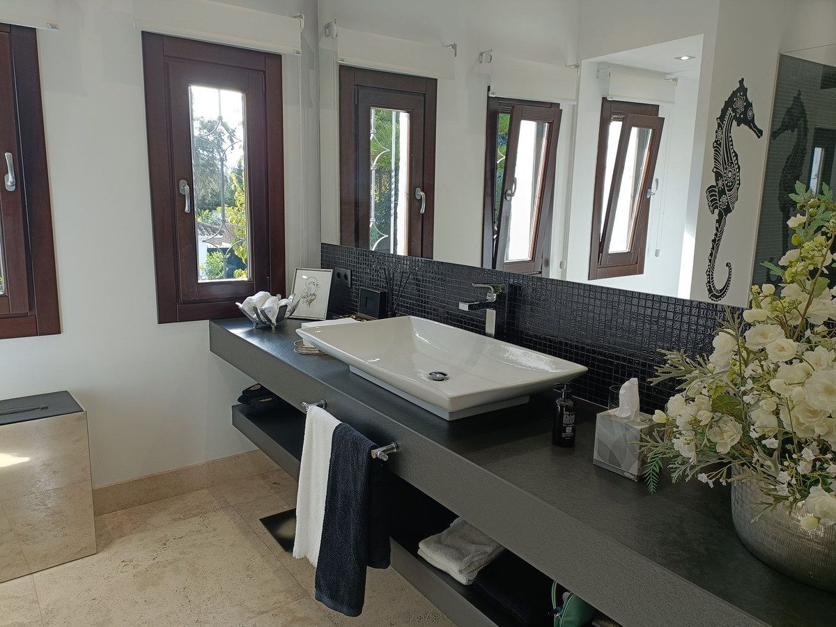 A la venta por primera vez. Una joya de Sotogrande clásico…Una oportunidad única para comprar esta mansión, diseñada y construida en el estilo tradicional Andaluz y situada en el corazón de Sotogrande Costa. La propiedad está rodeada de árboles maduros y ofrece un espectacular jardín con gran piscina privada y cuenta además con servicios como restaurantes, polo, golf y las playas cercanas.Esta especial casa familiar, que está ahora disponible para su compra, ha sido totalmente renovada con la reciente incorporación de una espectacular cocina nueva y ha sido decorada por un diseñador de interiores local.Suelo radiante parcial, suelos de madera, mucha privacidad, impecable jardín, chimenea, suite principal que ocupa toda la 1ra planta, casa de invitados y muchos detalles más hacen de esta propiedad una casa única imposible de encontrar en el mercado.~
