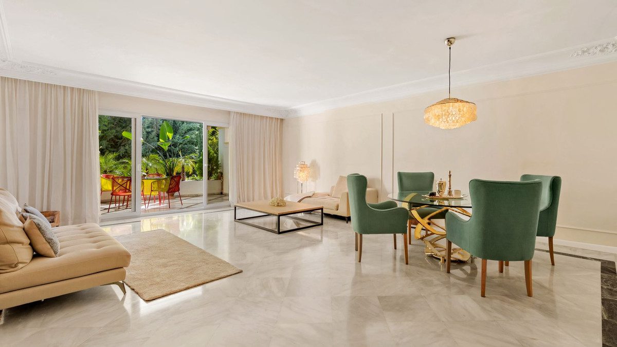 Este hermoso apartamento en planta baja está ubicado en Monte Paraiso, una comunidad exclusiva en la Milla de Oro, que ofrece una combinación perfecta de lujo y confort. Con una gran sala de estar, 3 amplios dormitorios / 2 baños y una cocina nueva con equipamiento SMEG, este elegante apartamento tiene 160 m2 y se complementa con una encantadora terraza de 29 m2. Desde el salón con orientación este/sureste se puede disfrutar de las pintorescas vistas al jardín. Esta residencia ofrece un refugio ideal a pocos minutos del mar. El estacionamiento es conveniente con dos espacios exclusivos.La comunidad cuenta con 2 piscinas al aire libre y 1 cubierta climatizada, perfectas para disfrutar durante todo el año. Más adelante hay un gimnasio y una pista de squash disponibles para mantenerte en forma. La seguridad es primordial en este complejo, ya que está completamente cerrado y cuenta con un guardia de seguridad las 24 horas. También hay un restaurante que abre durante los meses de verano.~