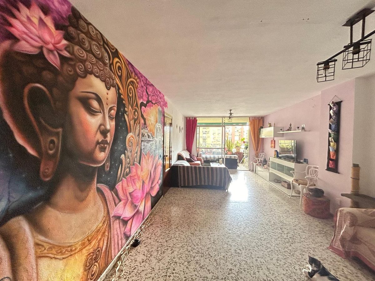 Este apartamento en Torremolinos ofrece una ubicación espectacular!A solo 1 minuto del centro, con orientación sur para disfrutar del sol, una amplia terraza de aproximadamente 10 metros cuadrados y cuatro dormitorios junto con dos baños completos.También cuenta con una cocina independiente con lavadero y un amplio recibidor, así como un salón comedor espacioso. Además, se incluye una plaza de garaje en el mismo edificio. Si bien necesita reformas, este apartamento tiene un gran potencial para ser un hermoso hogar en una ubicación privilegiada. ¡No te pierdas la oportunidad de hacer de este lugar tu propio oasis en Torremolinos!~