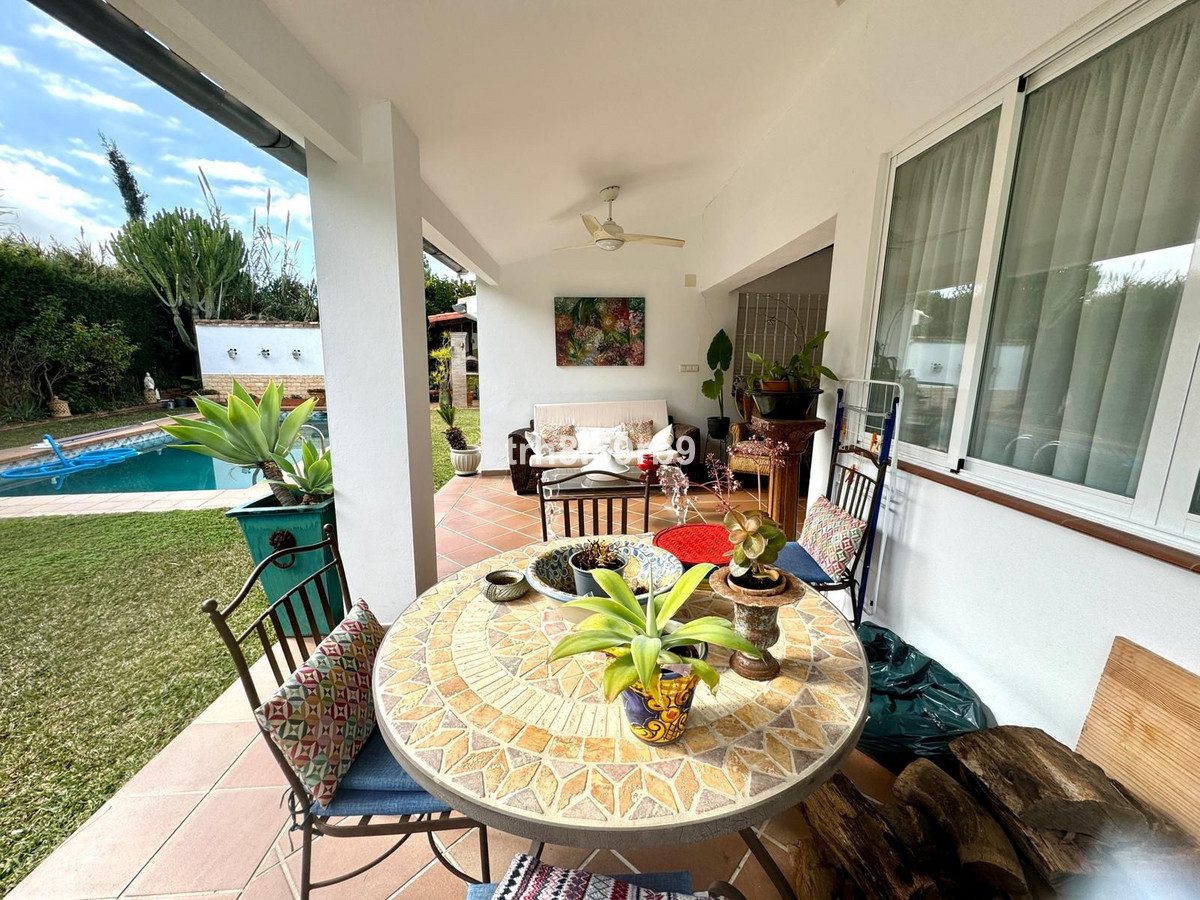 REDUCIDO EN 55.000 EUROS Disfrute del encanto de la vida rústica andaluza con esta excepcional villa independiente, una armoniosa mezcla de elegancia tradicional y confort moderno. Escondida en un tranquilo barrio junto a la playa, esta propiedad emana un encanto atemporal y ofrece un remanso de tranquilidad. Al entrar le da la bienvenida el porche de la puerta principal, rodeado de terraza y vegetación, con un olivo como centro de escena al entrar. A través de la entrada principal, el vestíbulo le da la bienvenida a una amplia sala de estar que es el corazón de la villa, con una chimenea de leña cerrada. El comedor, adornado con vigas de madera tradicionales y con mucha luz natural, es el escenario de reuniones memorables y comidas íntimas. Al lado se encuentra la amplia cocina, con toques rústicos y comodidades modernas y un amplio espacio para una mesa que puede alojar cómodamente hasta 8 personas. El garaje privado es amplio para dos coches a la vez que sirve de despensa y trastero con estanterías de pared. Esta villa se distribuye con cuatro dormitorios – 3 cuentan con baño en-suite, ofreciendo privacidad y comodidad, mientras que un trastero cerca de la cocina ofrece potencial para crear un dormitorio adicional. Junto a la sala de estar se encuentra la terraza cubierta, orientada al sur, y da acceso a un amplio y tranquilo jardín. La piscina privada le invita a relajarse y disfrutar de las tardes bajo el cálido sol mediterráneo. Junto a la piscina encontrará una zona de barbacoa cubierta, un amplio cobertizo que puede albergar una mesa de terraza exterior y alguna zona de asientos perfecta para disfrutar con la familia y los amigos. Mientras tanto, el jardín trasero ofrece un refugio sereno con dos árboles frutales, que se suman a la belleza natural del exterior de la villa.Villa – Chalet, Atalaya, Costa del Sol.4 Dormitorios, 3 Baños, Construidos 260 m², Terraza 30 m², Jardin/Terreno 833 m².Posición : Lado de la Playa, Cerca de Golf, Cerca de Tiendas, Cerca del Mar.Orientación : Sur.Estado : Buen.Piscina : Privada.Climatización : Aire Acondicionado, Chimenea.Vistas : Jardín.Caracteristicas : Armarios Empotrados, Cerca de Transporte, Terraza Privada, Trastero, Baño En-Suite, Acceso para personas con movilidad reducida, Barbacoa.Muebles : Sin Amueblar.Cocina : Equipada.Jardin : Privado.Seguridad : Recinto Cerrado.Aparcamiento : Garaje, Más de uno.Servicios Públicos : Electricidad, Agua Potable.Categoría : Reventa.~