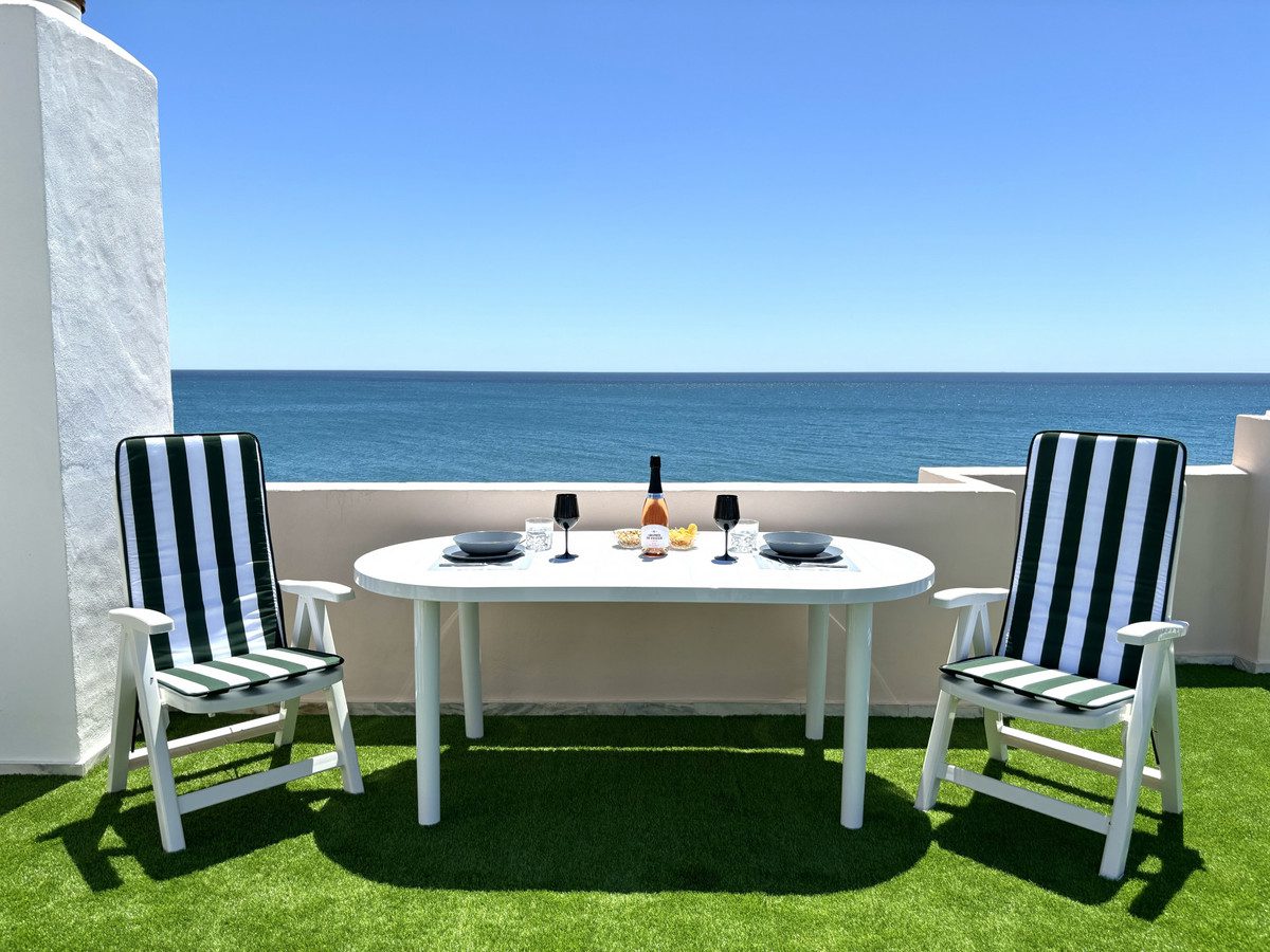 Este maravilloso penthouse dúplex de lujo se encuentra en Arroyo Vaquero, Estepona West, Estepona, Malaga. Con una superficie construida de 185m², esta propiedad ofrece todo el espacio que necesitas para vivir cómodamente. Además, cuenta con un interior de 115m² y una amplia terraza de 70m² donde podrás disfrutar del clima mediterráneo y de las vistas panorámicas al mar.El penthouse dúplex cuenta con 2 dormitorios y 2 baños, lo que lo convierte en un espacio ideal para parejas o familias pequeñas. La cocina completamente equipada te permitirá preparar deliciosas comidas, y el salón y comedor integrados proporcionan un espacio acogedor para relajarte después de un largo día.Entre las características destacadas de esta propiedad se encuentran los suelos de mármol, las puertas de cristal, los armarios empotrados y el acceso directo al mar. Además, el penthouse dúplex está ubicado en una urbanización con piscina y jardín comunitarios, garaje comunitario y se encuentra en excelente estado.La ubicación de esta propiedad es inmejorable, ya que se encuentra en primera línea de playa y cuenta con todos los servicios necesarios cerca. Además, está cerca de transporte público, tiendas, restaurantes y escuelas. Se admiten mascotas y la propiedad cuenta con aire acondicionado y conexión a internet de alta velocidad. No pierdas la oportunidad de vivir en este maravilloso penthouse dúplex de lujo en Arroyo Vaquero, Estepona.~