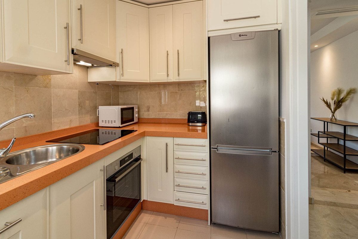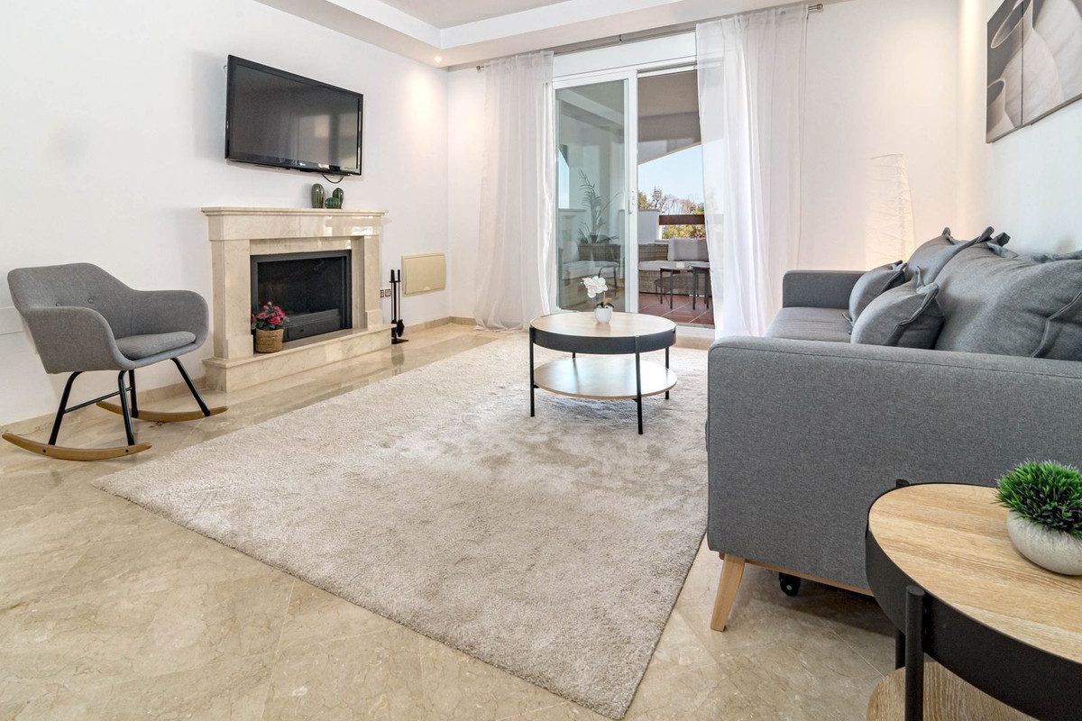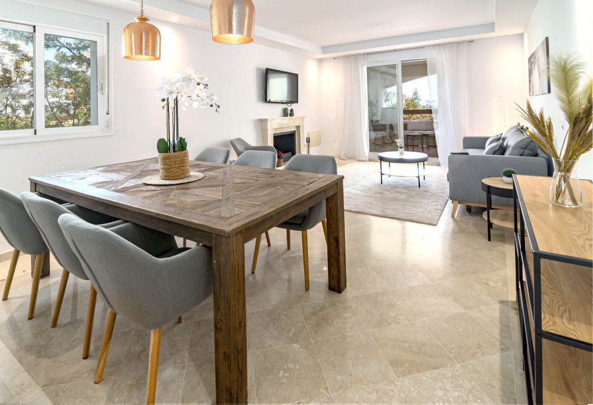 Ubicado en el corazón vibrante de Nueva Andalucía, Marbella, este exquisito apartamento en planta baja ofrece una mezcla incomparable de confort y estilo de vida mediterráneo. Situado dentro de la estimada Urbanización Aloha Royal, esta propiedad es una verdadera joya, con una orientación suroeste/este que captura tanto las vistas al mar como a la montaña. Con una amplia superficie construida de 105 metros cuadrados y una terraza adicional de 20 metros cuadrados, este apartamento está diseñado para proporcionar una experiencia de vida serena y lujosa.El apartamento cuenta con dos dormitorios de tamaño generoso, cada uno diseñado para maximizar la comodidad y el estilo. Ambos dormitorios se complementan con dos baños totalmente equipados, garantizando comodidad y privacidad para los residentes. La propiedad está en buen estado y viene totalmente amueblada, con una cocina totalmente equipada que atiende a todas las necesidades culinarias. El aire acondicionado está instalado en todas partes, proporcionando un ambiente de vida cómodo durante todo el año.Los residentes de este apartamento disfrutarán del acceso a una variedad de comodidades comunes, incluyendo dos piscinas prístinas y un jardín muy bien mantenido. La propiedad también incluye un garaje seguro, añadiendo una capa adicional de comodidad y seguridad. Para aquellos que disfrutan de la vida al aire libre, la terraza privada ofrece un espacio perfecto para relajarse y disfrutar de las impresionantes vistas.Ubicado estratégicamente cerca de campos de golf y escuelas, este apartamento es ideal para familias o como una oportunidad de inversión lucrativa. La baja cuota comunitaria de sólo 100 € por mes mejora aún más su atractivo. Con el potencial de convertir la disposición existente de dos dormitorios en una configuración de tres dormitorios, esta propiedad ofrece flexibilidad para adaptarse a las necesidades variables. Experimenta lo mejor de Marbella viviendo con esta excepcional oferta en Nueva Andalucía.~
