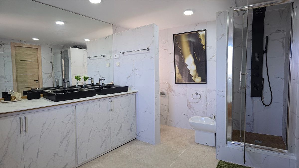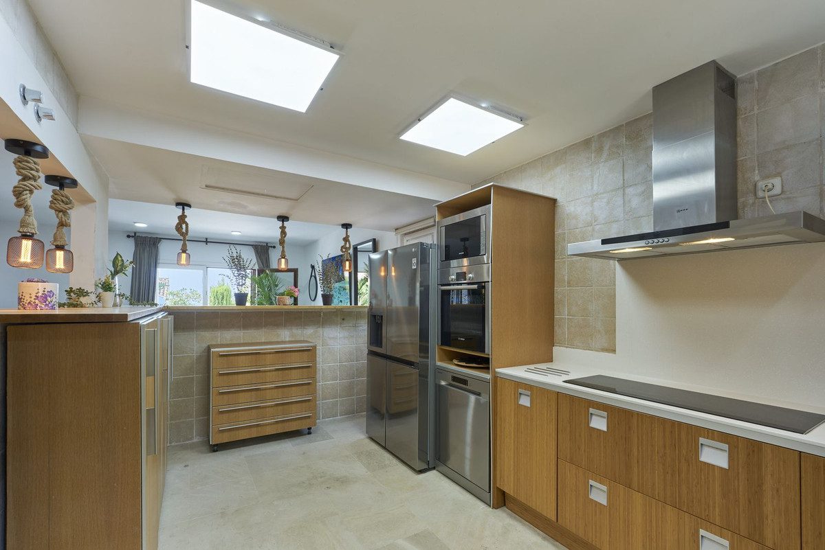 Vive tu mejor vida en la Milla de Oro de MarbellaA sólo 100 metros del mundialmente famoso Marbella Club Hotel y a 400 metros de la playa, esta Semi-Villa está situada en el corazón de la lujosa Milla de Oro de Marbella. Salga de su puerta para disfrutar de la opulencia de los restaurantes con estrella Michelin de Puente Romano, de las pistas de tenis de categoría mundial y de las playas de arena de Marbella.La marisquería más famosa de Marbella, galardonada con una estrella Michelin, está a sólo 50 metros, y otros establecimientos de Dani García se encuentran a poca distancia a pie. La villa también está convenientemente situada a cinco minutos en coche de Puerto Banús y del casco antiguo de Marbella.Ubicada en una pequeña comunidad con amplios terrenos, esta Semi-Villa de tres dormitorios + habitación extra, más una suite independiente, cuenta con una piscina de doble longitud, una pista de pádel y unas vistas impresionantes tanto del mar al sur como de la montaña de La Concha al norte. En el interior, encontrará suelos de mármol, aire acondicionado y calefacción central, un bar alto y una terraza perfecta para recibir invitados.La propiedad incluye dos plazas de aparcamiento subterráneo y un trastero. Los entusiastas del golf apreciarán estar a diez minutos en coche de tres de los mejores clubes de golf de la Costa del Sol: Aloha, Las Brisas y Los Naranjos. Además, el Colegio Internacional Británico de Marbella está a sólo cuatro minutos.~