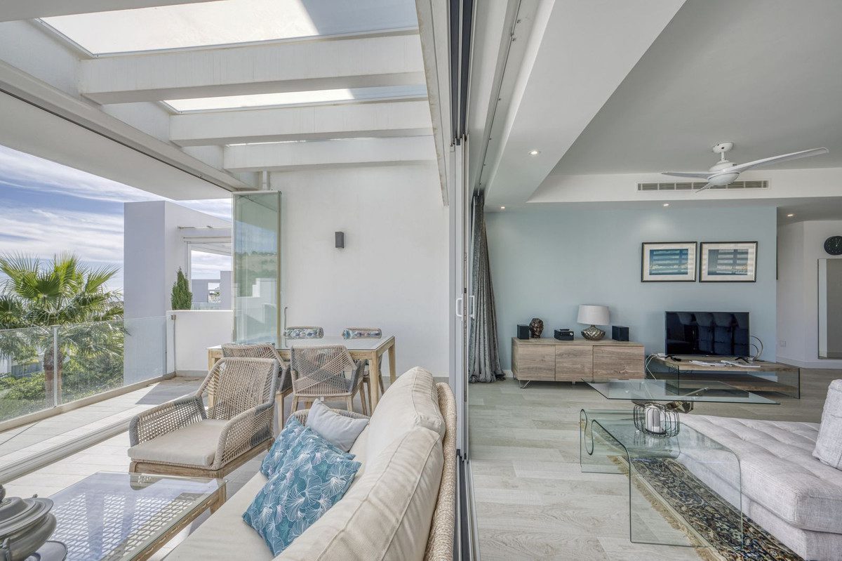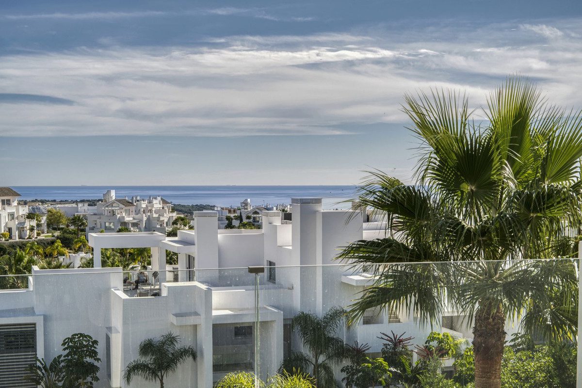 Amor a primera vista! Amplio apartamento de esquina de 3 dormitorios en un entorno paradisíaco, pero cerca de todos los servicios y de la ciudad de Estepona. Situado en el bloque más elevado y privado, fase 3 de Alcazaba Lagoon, tus sentidos se despiertan al entrar, gracias a la maravillosa luz y distribución. La urbanización es de última generación, con todas las comodidades que puedas imaginar: una laguna privada donde los propietarios pueden practicar todo tipo de deportes acuáticos o relajarse en una de las playas de arena blanca; un restaurante mediterráneo y un bar de playa; un gimnasio y un minimercado; jacuzzi y sauna; y, por supuesto, piscinas, un enorme jardín y rutas de senderismo. El tamaño del salón es realmente espectacular, y la amplia cocina abierta totalmente equipada se integra a la perfección. La terraza envolvente de 44m2 tiene vistas abiertas al mar y al jardín por un lado, y a las montañas de Estepona y a un terreno agrícola protegido por el otro. El propietario ha instalado cortinas de cristal para crear una zona de descanso, que se pueden abrir o cerrar. La zona de noche consta de 3 amplios dormitorios (uno se ha convertido en oficina) y 2 baños completos. El propietario acaba de terminar una importante renovación y reforma, que incluye una cocina a estrenar, ventiladores, terraza, muebles, cortinas a medida… Lista para entrar a vivir. El precio incluye dos plazas de aparcamiento privado subterráneo y un enorme trastero equipado. ¡¡¡Una visita obligada!!!~