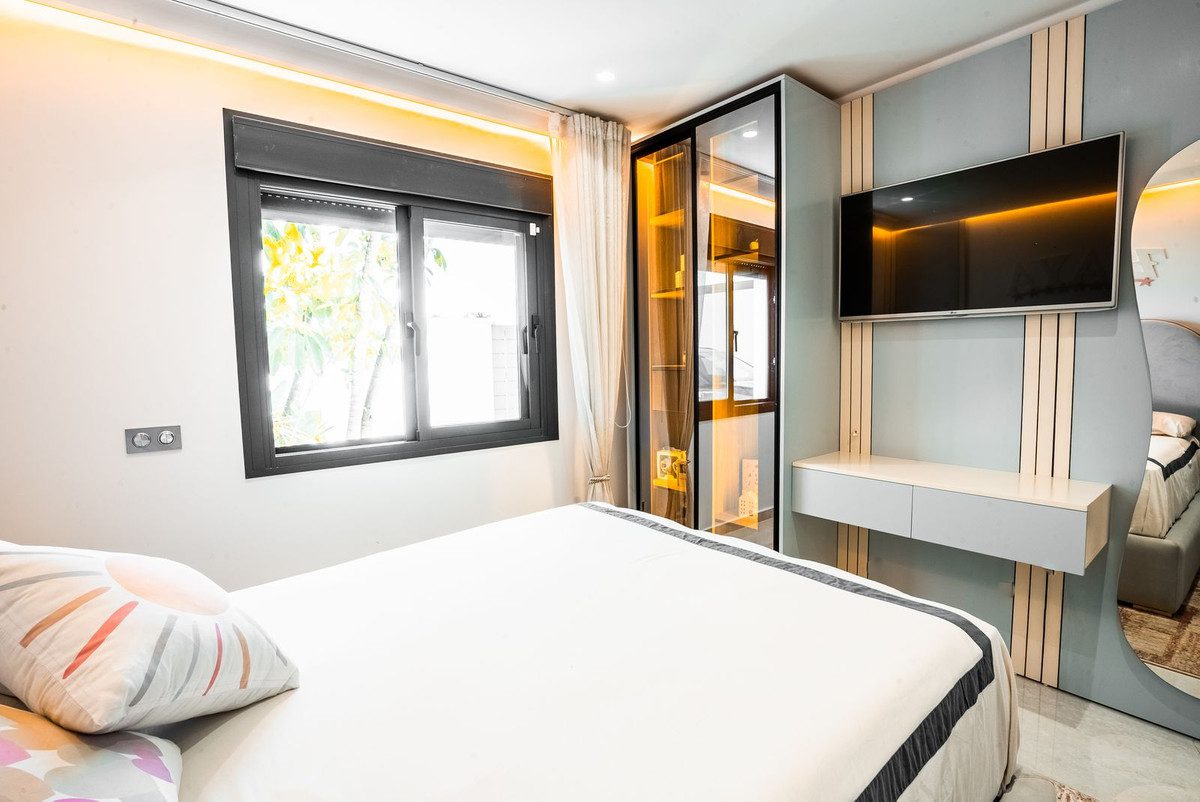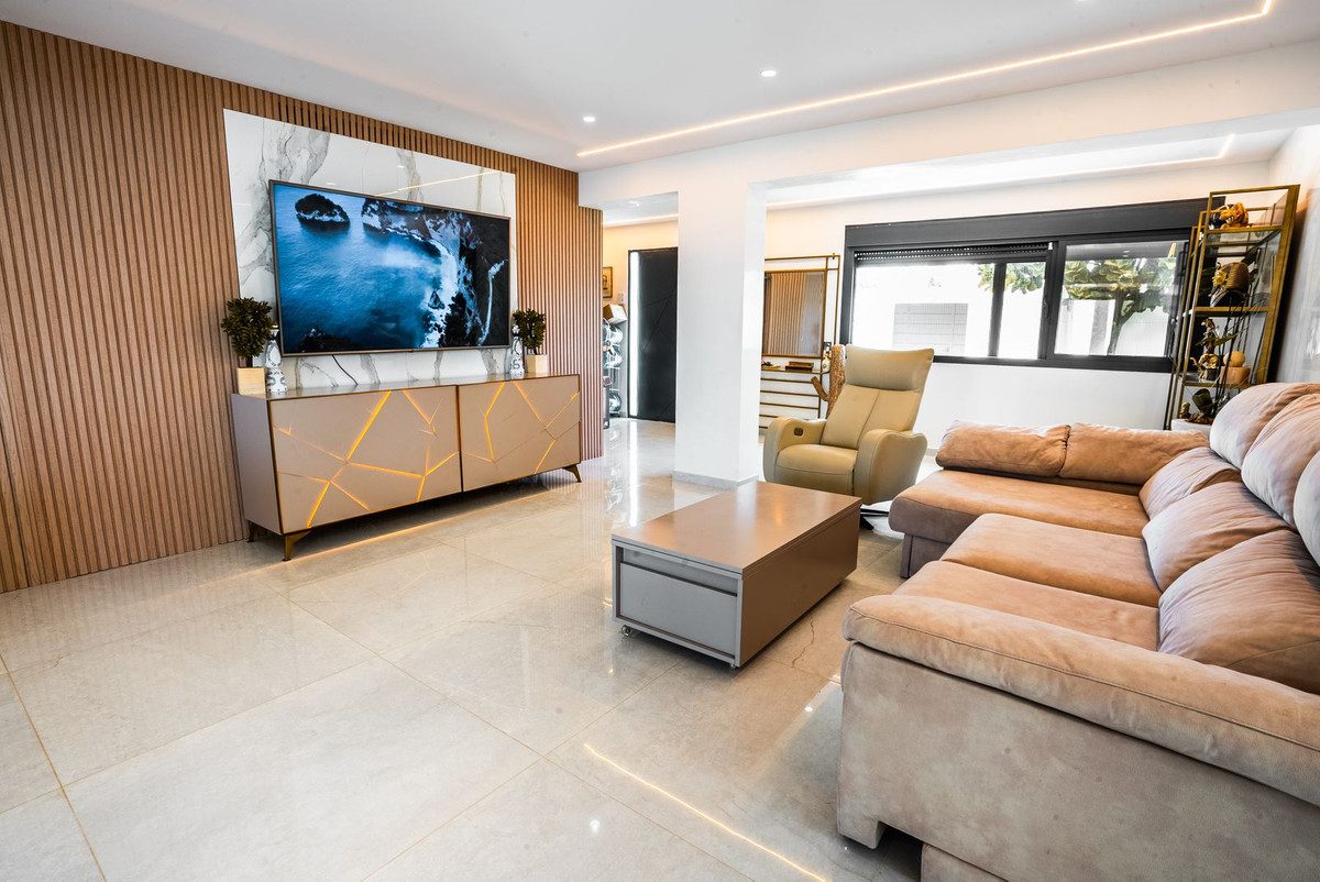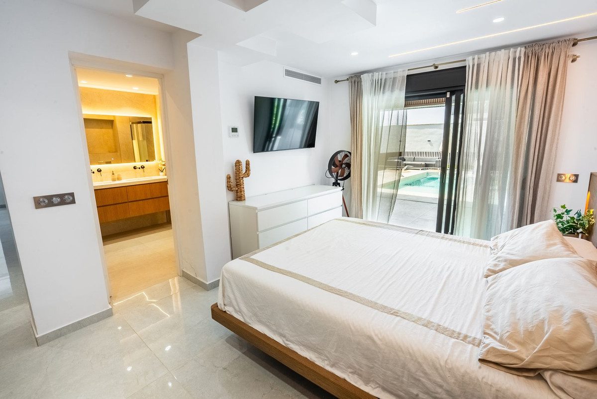 Esta villa independiente, completamente renovada y ubicaImpresionante Villa Independiente de 3 Dormitorios y 3 Baños Completamente Reformada en Atalaya-Isdabe, Esteponada en la codiciada zona de Atalaya-Isdabe en Estepona, ofrece un estilo de vida de lujo a pocos minutos de la costa. La propiedad cuenta con 3 amplios dormitorios y 3 modernos baños, combinando un diseño contemporáneo con el encanto de la vida costera.La suite principal es un verdadero refugio, con un impresionante cabecero de madera a medida con iluminación ambiental incorporada que crea un ambiente cálido y acogedor. La luz natural inunda la habitación a través de grandes puertas correderas de cristal, que dan acceso al jardín privado y la zona de la piscina. El baño en suite está elegantemente diseñado, con doble lavabo, un tocador de líneas limpias y una bañera exenta. Los acabados de alta gama y los suaves azulejos en tonos neutros completan el ambiente tipo spa. La suite también incluye un amplio vestidor con soluciones de almacenamiento como estantes, cajones y espacio para colgar ropa.Los otros dos dormitorios están igualmente bien equipados, ofreciendo amplio espacio y luz, perfectos para la familia o los invitados. Cada baño de la casa está diseñado pensando en el lujo, con acabados y accesorios de primera calidad.En el exterior, la propiedad cuenta con una piscina privada, ideal para disfrutar del sol andaluz, y un exuberante jardín que ofrece espacio tanto para relajarse como para entretenerse. Ya sea para disfrutar de una cena al aire libre en la terraza o relajarse junto a la piscina, esta villa es perfecta para aquellos que buscan el estilo de vida mediterráneo definitivo.Con su diseño elegante, acabados de alta gama y ubicación privilegiada, esta villa completamente reformada es una oportunidad excepcional en uno de los barrios más deseados de Estepona.~