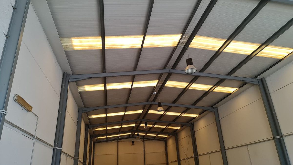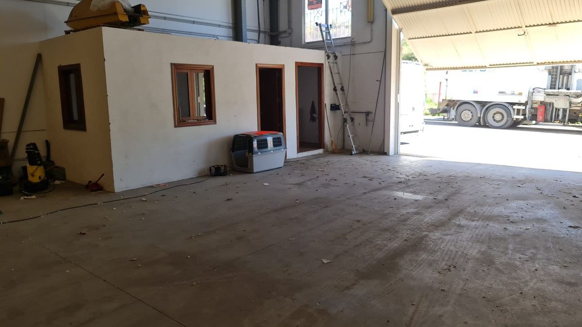 Nave industrial muy amplia y en muy buen estado.Dispone de una oficina de recepción y un aseo, así como lamparas de techo.Techos muy altos con posibilidad de construir altillo de oficinas.~