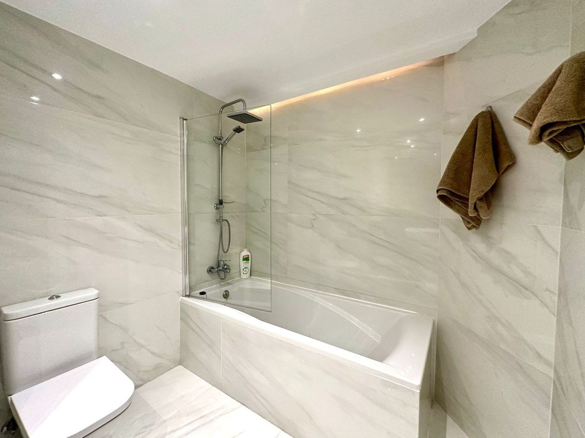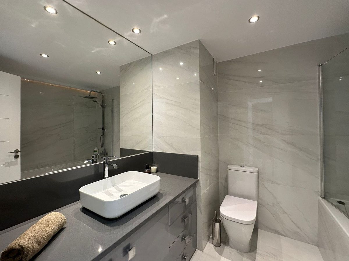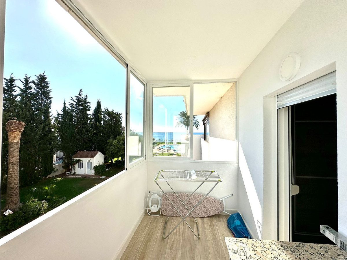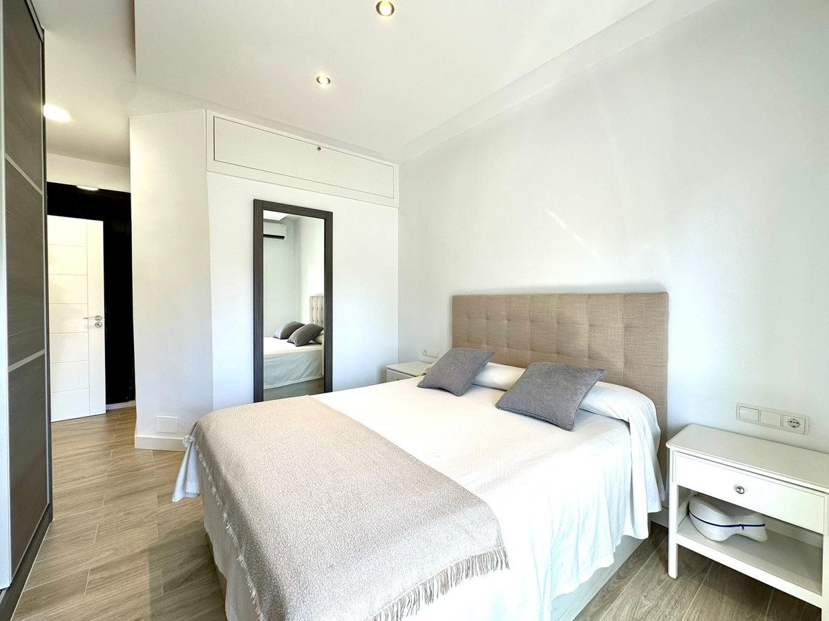 Al entrar en este luminoso apartamento en Bahía de Estepona, descubrirá un espacio diseñado para aprovechar al máximo la luz natural y las espectaculares vistas. El amplio salón, con una moderna cocina americana equipada con electrodomésticos de última generación, crea un ambiente acogedor ideal para la vida diaria y para recibir a invitados. Los dos dormitorios, con armarios empotrados y orientación sur, ofrecen un refugio tranquilo y luminoso. El baño, renovado con acabados de alta calidad, combina funcionalidad y diseño, creando un espacio perfecto para relajarse. El apartamento cuenta con dos amplias terrazas, ideales para disfrutar del aire libre y relajarse con vistas al mar. Situado en la primera planta de un edificio en excelente estado, con ascensor y acceso fácil, esta propiedad garantiza la máxima comodidad.Bahía de Estepona es una urbanización exclusiva con acceso directo a la playa, piscina, pista de tenis y amplias zonas verdes. Con parking incluido y un entorno seguro, ofrece una experiencia de vida inmejorable. La proximidad al centro de Estepona y todos sus servicios, junto a la tranquilidad de la playa, hacen de este apartamento una inversión única en calidad de vida.~