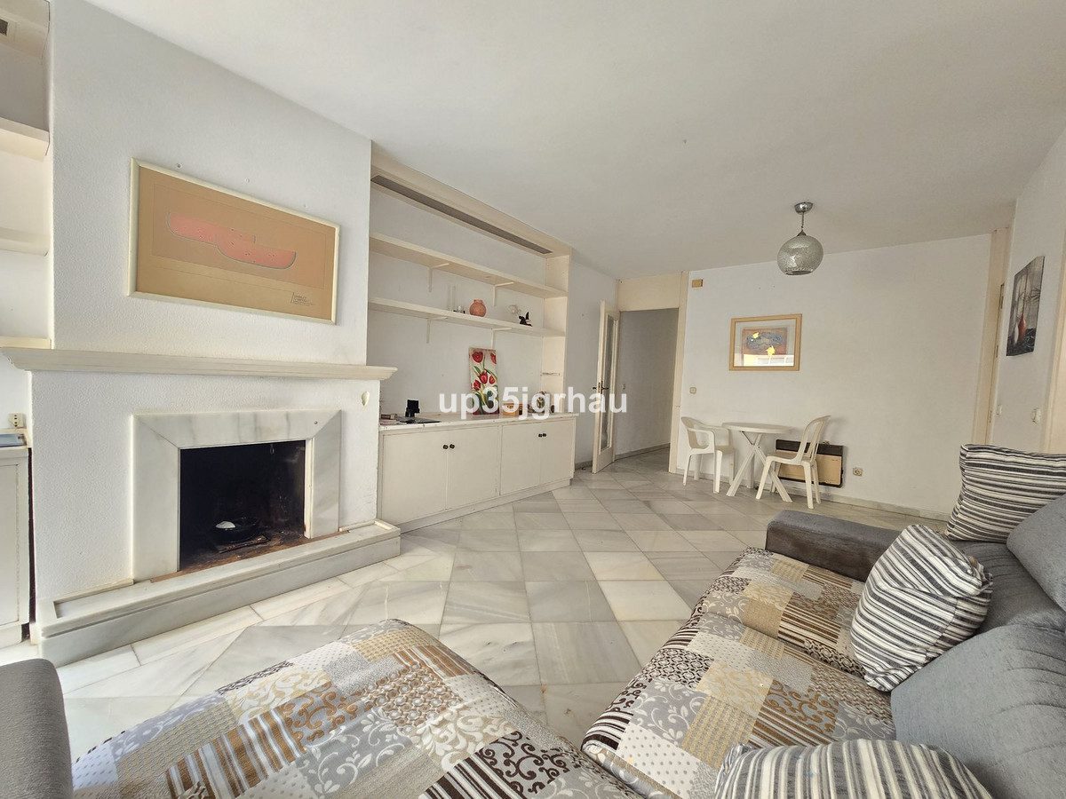 Gran oportunidad de inversión para los amantes del mar, del ocio deportivo y gastronómico en el centro de Estepona en la primera línea, a tan sólo un par de pasos de la playa.Distribuido en 2 dormitorios, ambos con baño en suite y uno de ellos con acceso directo a la terraza, cocina independiente y gran salón comedor con chimenea, terraza con vistas laterales al mar. Plaza de garaje incluida en precio.Así mismo el edificio, dispone de pista de padel y de piscina comunitaria, en el que se puede disfrutar en un ambiente muy tranquilo y privativo, contemplando el horizonte infinito de nuestras playas y estrecho.Ideal para residencia vacacional o permanente, todos los servicios están cerca, como supermercados, restaurantes, farmacia, centro médico, parques infantiles, jardín botánico, transporte público y el fantástico paseo marítimo.~