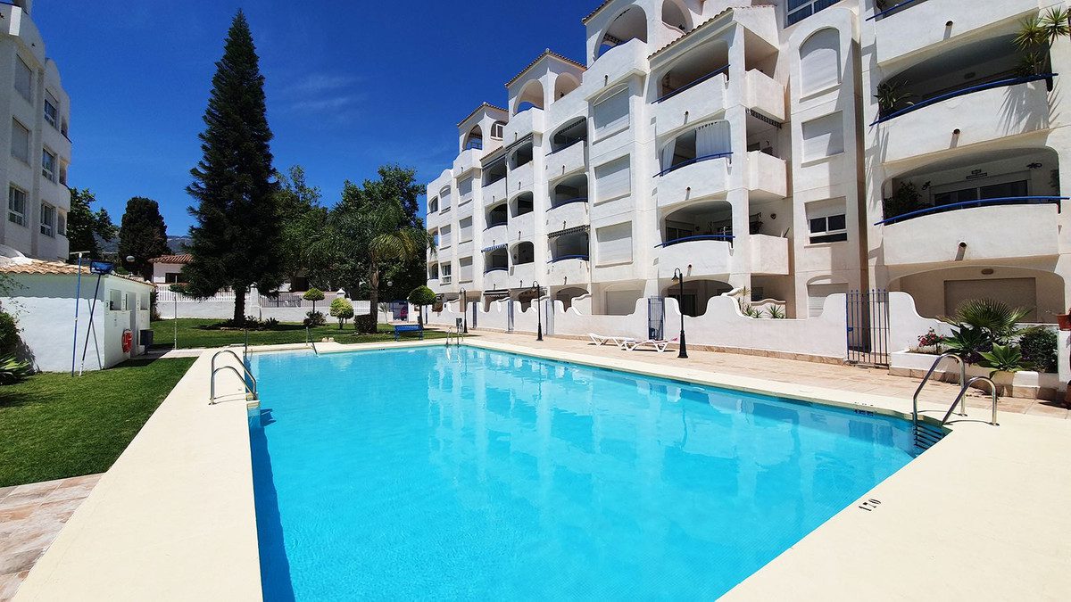Bonito piso amplio con 100m2 interior con terraza cubierta en urbanización con gran piscina cerca de Puerto Marina en Benalmádena-Costa. Dos dormitorios, dos cuartos de baño, acogedor salón con acceso a una terraza cubierta con vistas a la piscina, cocina totalmente equipada. Bien situado cerca de todos los servicios, parada de autobús, tiendas, bares y restaurantes y a menos de 10 minutos andando de la playa y del famoso Puerto Marina de Benalmádena-Costa. Arroyo de la Miel con su estación de tren Málaga-Fuengirola está a unos 5 minutos en coche y el aeropuerto International de Málaga a 20 minutos. ¡No viene a menudo pisos a la venta en esta urbanización! Complejo muy bien cuidado con amplio aparcamiento comunitario. Ideal para pasar unas fantásticas vacaciones y disfrutar de la Costa del Sol que tiene mucho que ofrecer. No dude en ponerse en contacto con nosotros para una visita.~