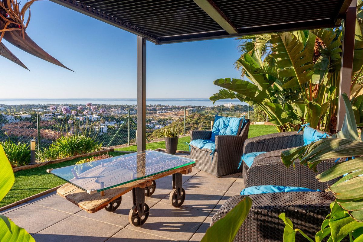 El Adosado GRAND VIEW es una excepcional y confortable vivienda de 225 m2, orientación sureste situada en la prestigiosa zona de El Paraíso Alto. El complejo residencial cerrado y vigilado de casas adosadas proporciona seguridad y comodidad, mientras que los residentes disfrutan de 3 piscinas rodeadas de vegetación, con espectaculares vistas al mar. Las vistas panorámicas al mar y a la montaña de La Concha, así como la orientación sureste, proporcionan comodidad y diferencian la propiedad de la competencia. El adosado presentado hace esquina, tiene un amplio jardín y en él: zona de barbacoa con mobiliario de jardín de diseño, zona chill-out, ducha exterior y jacuzzi. La casa tiene una sala de estar con cocina abierta con isla, 4 dormitorios, 3 baños y un aseo.En el nivel de entrada hay un amplio salón con chimenea, cocina americana y comedor, aseo de invitados y una gran terraza con espectaculares vistas al mar y a la montaña de La Concha. El salón está muy bien iluminado, con ventanas panorámicas en la terraza y una ventana adicional en la mesa del comedor.En la primera planta hay un dormitorio principal con baño ensuite y amplio vestidor, dos dormitorios con un baño compartido y una amplia terraza con vistas panorámicas al mar y a la montaña. Cada cuarto de baño está equipado con ducha y bañera. Dos dormitorios tienen armarios empotrados con mucho espacio de almacenamiento.En la segunda planta hay un cómodo lavadero y una entrada al solarium, que se puede organizar como zona de relax.El cuarto dormitorio está situado en el nivel del jardín y tiene una salida independiente al jardín. Se trata de un estudio de aproximadamente 45 m2 con cocina americana, zona de estar y un cuarto de baño equipado con ducha. Es una opción adicional ideal para residentes, invitados o para subarrendar parte de la propiedad. La casa dispone de licencia turística.En el garaje bajo el edificio hay una amplia plaza de aparcamiento perteneciente a la casa con posibilidad de aparcar 2 coches y un trastero.La casa ha sido completamente reformada en 2024r y no requiere ningún desembolso económico. La casa está acabada con materiales de alta calidad – suelos y escaleras de mármol, baños acabados con travertino, armarios y puertas interiores de madera maciza. También se distingue por la cantidad de espacio de almacenamiento para la comodidad. La casa está equipada con paneles para calentamiento de agua, aire acondicionado con refrigeración y calefacción, chimenea, riego e iluminación de jardín. La ubicación de la casa en el municipio de Benahavis asegura honorarios razonables asociados con la propiedad y el acceso a las comodidades de la comunidad. Traducción realizada con la versión gratuita del traductor DeepL.com~
