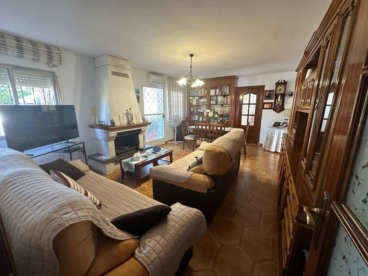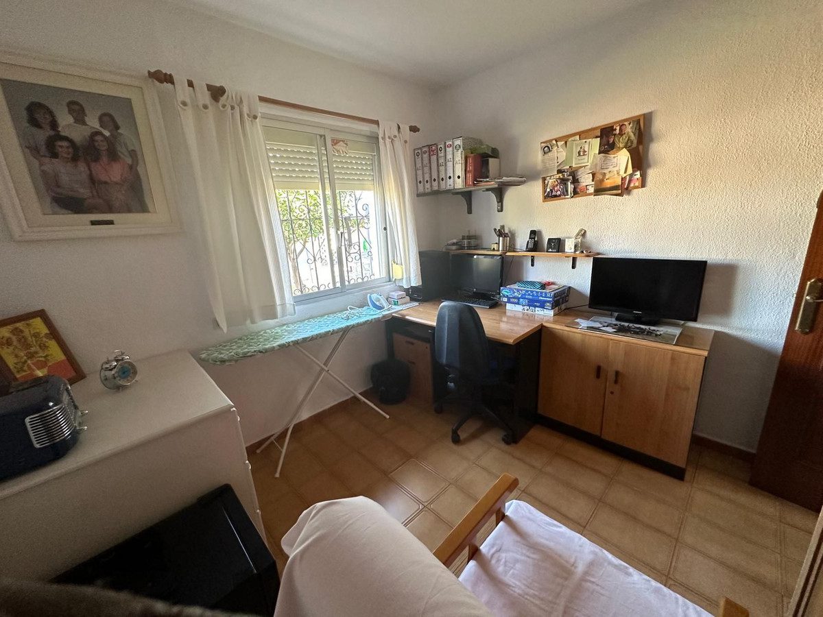 Fantástico chalet de una sola planta ubicado sobre un terreno de casi 800m2.La vivienda en su interior se encuentra en muy buen estado y se distribuye en:A la entrada, un gran porche reformado, luminoso y perfecto para comedor exterior. Sirve ambos para el verano y para el invierno.Entrando por la puerta principal, encontramos el salón con techo de doble altura, chimenea y aire acondicionado, el cual da acceso a la cocina, al cuarto de baño, al dormitorio y a un pasillo donde encontramos los otros dos dormitorios, uno de ellos, el principal y con baño en-suite.La cocina, moderna, es muy amplia y completamente equipada, con lavavajilla, horno, microondas, vitrocerámica, extractor, lavadora y nevera. Todo se encuentra en buen estado y en perfecto funcionamiento. Consta de muebles profundos que ofrecen mucho almacenamiento, tiene una ventana exterior y da acceso a una parte del parking que está techado. En esta zona del parking techado encontramos un lavadero exterior muy práctico, con una zona de taller con almacenamiento y barbacoa.Desde el salón accedemos a un cuarto de baño totalmente reformado con plato de ducha y ventana exterior, y también a un dormitorio con su armario empotrado y ventana exterior.Pasando por el pasillo, a la derecha del salón, encontramos el dormitorio principal con armario empotrado y con un gran baño en-suite realmente espacioso con plato de ducha y ventana exterior.Justo al lado del dormitorio principal tenemos el tercer dormitorio con armario empotrado y ventana exterior.La zona exterior consta de un maravilloso y amplio solarium donde se aprecian unas únicas vistas parciales al mar y a la montaña, al cual se accede mediante una escalera de caracol, y que es ideal para organizar eventos y cenas familiares al aire libre para disfrutar ambos en invierno y verano del estupendo clima mediterráneo. .El chalet dispone de plaza de aparcamiento muy espaciosa para hasta cuatro vehículos.El amplio jardín es dominado por un gran árbol (Araucaria) y presenta diferentes árboles frutales como naranjos, mangos, limoneros, en definitiva un ambiente tranquilo y agradable donde cuidar y cultivar productos ecológicos. Para completar la zona exterior también encontramos una barbacoa de obra para esos inolvidables momentos bucólicos.Además la piscina privada para disfrutar del caluroso verano. La vivienda dispone de un gran trastero para almacenaje de todos enseres y productos.La villa se vende amueblada. ~