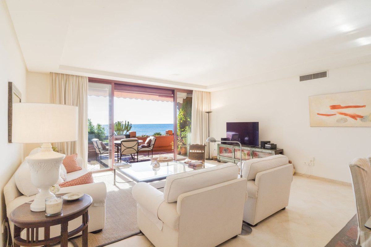 ¡Descubre el paraíso en la Costa del Sol! Este lujoso apartamento en primera línea de playa ofrece vistas panorámicas al mar que te dejarán sin aliento. Ubicado en un exclusivo complejo cerrado con seguridad 24 horas, disfrutarás de exuberantes jardines, una piscina impresionante y acceso privado a playas de arena dorada. Con 200 m² construidos, el apartamento cuenta con 3 amplios dormitorios, 3 baños elegantes, una terraza y un balcón perfectos para relajarte al atardecer.La propiedad, en excelente estado, se encuentra en la primera planta y está equipada con ascensor, aire acondicionado y calefacción por bomba de frío/calor. Además, incluye una plaza de garaje. A solo 5 minutos del centro de Marbella y a 10 minutos de Puerto Banús, tendrás a tu alcance una variedad de servicios como supermercados, pistas de tenis, gimnasios y restaurantes. ¡No pierdas la oportunidad de vivir el sueño mediterráneo con todas las comodidades que mereces!Apartamento Planta Media, Las Chapas, Costa del Sol.3 Dormitorios, 3 Baños, Construidos 160 m², Terraza 39 m².Posición : Primera línea de Playa, Lado de la Playa, Cerca de Golf, Cerca de Tiendas, Cerca de Colegios, Complejo 1ª Línea de Playa.Orientación : Sur.Estado : Excelente.Piscina : Comunitaria.Climatización : Aire Acondicionado, A/A Caliente, A/A Frio.Vistas : Mar, Playa, Panorámicas, Jardín.Caracteristicas : Terraza Cubierta, Ascensor, Terraza Privada, Trastero, Suelos de Mármol.Muebles : Sin Amueblar.Cocina : Equipada.Jardin : Comunitario, Paisajista, Mantenimiento fácil.Seguridad : Recinto Cerrado, Persianas Eléctricas, Portero Automático, Alarma, Seguridad 24 Horas.Aparcamiento : Subterráneo, Garaje, Privado.Servicios Públicos : Electricidad, Agua Potable.Categoría : Frente a la playa, Inversion, Lujo, Reventa.~