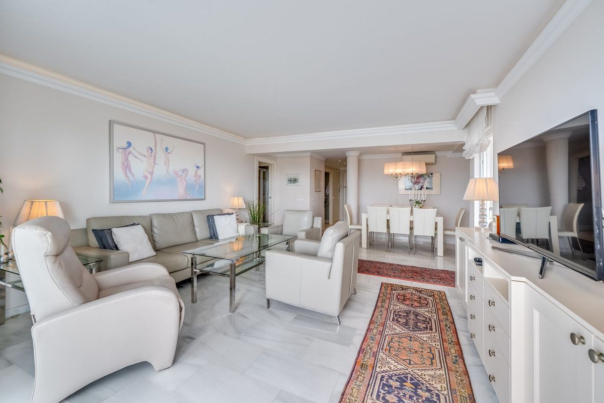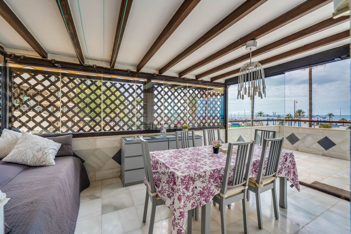 ¡UBICACIÓN! ¡UBICACIÓN!¡Una oportunidad única de comprar un fantástico apartamento grande y renovado en primera línea de playa en el centro de Marbella!Un apartamento en esquina luminoso y moderno situado en la mejor parte del Paseo Marítimo con maravillosas vistas abiertas al mar.Esta propiedad tiene todo lo que uno puede pedir en términos de calidad y ubicación. El paseo marítimo de Marbella ofrece una gran cantidad de restaurantes y bares, tiendas y hoteles para divertirse durante el día y una gran vida nocturna. ¡Y todo eso está justo en la puerta de su casa!Este apartamento está completamente equipado, incluida una cocina moderna, lo que lo convierte en un hogar perfecto para siempre, así como una casa de vacaciones, lista para mudarse.Otro factor único es la fabulosa terraza de 49 metros cuadrados orientada al sur con vista a la playa y al puerto de Marbella, algo muy poco común en el centro de Marbella.Este encantador apartamento fue completamente renovado hace 10 años y modificó 2 apartamentos en uno.Al ingresar a la propiedad, lo primero que notará es la vista al mar y una sala de estar inundada de luz.A la derecha encontrará una moderna cocina con isla de desayuno y acceso a un lavadero.A la izquierda encontrará un dormitorio de invitados con orientación este.Un pequeño pasillo le lleva al espacioso y luminoso salón comedor con acceso a un invernadero y una terraza.Más adelante hay dos baños más, un segundo dormitorio de invitados también con acceso a la terraza y el dormitorio principal con baño en suite, también con acceso a la terraza soleada orientada al sur.Plaza de aparcamiento subterráneo disponible para alquiler.No se permiten alquileres a corto plazo en este edificio, decidido por el comité de propietarios.¡No deje pasar esta increíble oportunidad!~