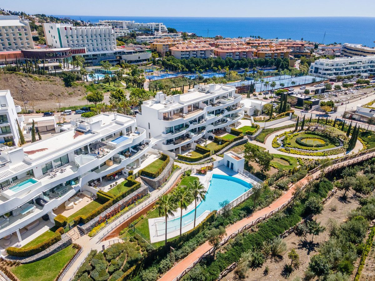 Ático de lujo con orientación oeste, situado en la exclusiva urbanización de Higuerón West. Consiste de entrada, amplio salón-comedor con ventanales de suelo a techo y acceden a una gran terraza de 158m2, con vistas a la montaña, jardines y parciales al mar. Cocina abierta totalmente amueblada y equipada con electrodomésticos de Bosch y zona de lavadero con lavadora / secadora. Dormitorio principal con baño ensuite y vestidor, y otros dos dormitorios con armarios empotrados y un baño completo. Hay una terraza trasera de 15m2 con acceso desde el salón. Aire acondicionado frío y calor de Airzone, vídeo portero, sistema domótica, pre-instalación de alarma, suelo radiante en ambos baños. Incluye dos plazas de aparcamiento y un trastero.~