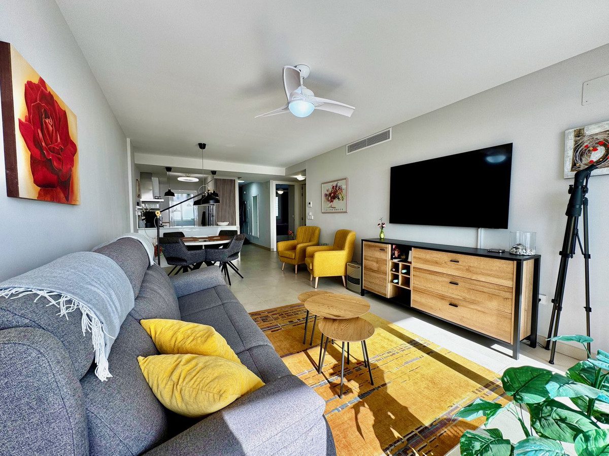 Concepto de vida interior/exterior en su mejor versión!Luminoso apartamento de diseño contemporáneo en un pequeño complejo de lujo en un ambiente tranquilo en lo alto de Torreblanca.El apartamento ha sido decorado con un estilo escandinavo y disfruta de una terraza orientada al suroeste con vistas panorámicas al mar. La cocina abierta sobre la zona de estar está totalmente equipada e incluye una zona de lavandería. Esta propiedad está equipada de la última tecnología, con calefacción / refrigeración por aerotérmia y persianas eléctricas. Además, la propiedad cuenta con 2 plazas de aparcamiento subterráneo y un trastero.La comunidad de 58 apartamentos está cerrada, incluye piscina de agua salada con vistas panorámicas al mar y la montaña, piscina de burbujas, piscina para niños, parque zen, gimnasio de última generación con sauna, casa club para residentes, área social, servicio de conserjería.A pocos minutos en coche encontrará la playa, una gran variedad de restaurantes y todos los servicios, asi como una estacíón de tren que le lleva al aeropuerto.~