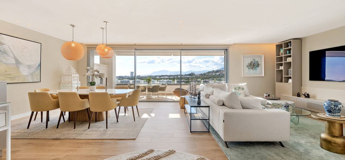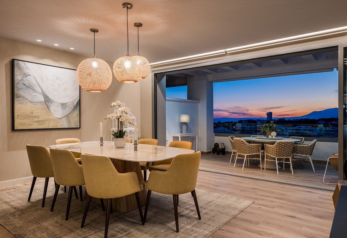 Bienvenido a tu nuevo hogar, el epítome de la vida de lujo en Marbella Este. Descubre el atractivo inigualable de este exquisito ático, enclavado en medio de una vegetación subtropical y rodeado de prestigiosos campos de golf y residencias opulentas. Sumérgete en un mundo de sofisticación y tranquilidad al adentrarte en este notable ático en esquina ubicado en el prestigioso Santa Clara Golf, mientras disfrutas de servicios de hotel de 5 estrellas en este complejo residencial.Prepárate para quedar cautivado por el exclusivo complejo residencial de estilo contemporáneo que cuenta con 42 propiedades excepcionales. Déjate llevar por el epítome del ocio de 5* con cinco impresionantes piscinas, que incluyen una piscina infinity de 30 metros y una fantástica piscina cubierta. Relájate en la zona de recreo, date un capricho en el gimnasio y SPA completamente equipados, relájate en la sauna o socializa en el Coffee Club y el área de coworking. Con servicios de conserjería impecables al alcance de tu mano, cada deseo se cumple sin esfuerzo.La ubicación de esta propiedad de lujo es verdaderamente inmejorable, ofreciendo una gran cantidad de comodidades a tu alcance. En las proximidades, encontrarás escuelas internacionales, supermercados, el renombrado hospital Costa del Sol, playas de arena vírgenes, famosos clubes de playa, prestigiosos campos de golf y clubes de tenis. Disfruta de un viaje culinario en una variedad de excepcionales restaurantes, bares y encantadores chiringuitos. Y a pocos minutos en coche, sumérgete en el atractivo de la cautivadora marina de Cabopino, el vibrante centro de Marbella y el legendario Puerto Banús.Adéntrate en un reino de elegancia absoluta en este ático de dos niveles que abarca impresionantes 213 metros cuadrados. Maravíllate con las vistas panorámicas desde el amplio salón decorado con una moderna chimenea eléctrica, una espaciosa zona de comedor y una cocina totalmente equipada. Deléitate con las habitaciones orientadas al suroeste y los modernos baños, diseñados cuidadosamente para mejorar tu comodidad y lujo. El punto culminante te espera en las notables terrazas que abarcan impresionantes 173 metros cuadrados. Disfruta del esplendor del sol mediterráneo en el fantástico solárium grande, que cuenta con una pérgola cubierta, múltiples áreas de descanso y baño de sol, una relajante chimenea de bioetanol y una piscina privada con vistas al reluciente mar y al campo de golf. Entretén con facilidad en la cocina exterior, completa con barbacoa y área de comedor, creando momentos inolvidables con familiares y amigos.Esta propiedad de alta gama se presenta en excelentes condiciones, completamente amueblada en un moderno estilo de moda. Disfruta de la comodidad de un garaje para dos coches y dos trasteros, que ofrecen un amplio espacio para tus pertenencias. Regálate una serie de características que elevan tu estilo de vida, que incluyen un ascensor, armarios empotrados, iluminación LED, puertas correderas de cristal, persianas eléctricas, aire acondicionado y calefacción por suelo radiante en todo el ático. La hermosa propiedad irradia calidez en las áreas de estar, los baños y la terraza. Mantente conectado con Internet de alta velocidad Wi-Fi y disfruta de la tranquilidad que te brinda el servicio de seguridad las 24 horas, el portero y la entrada vigilada.Ya sea que busques una residencia permanente para tu familia o una sólida oportunidad de inversión, este impresionante ático satisface todas tus necesidades. No pierdas la oportunidad de abrazar el glorioso estilo de vida mediterráneo en estos meticulosamente diseñados 213 metros cuadrados, con 173 metros cuadrados adicionales de fantásticas terrazas, todos tus deseos se cumplen en este paraíso.~