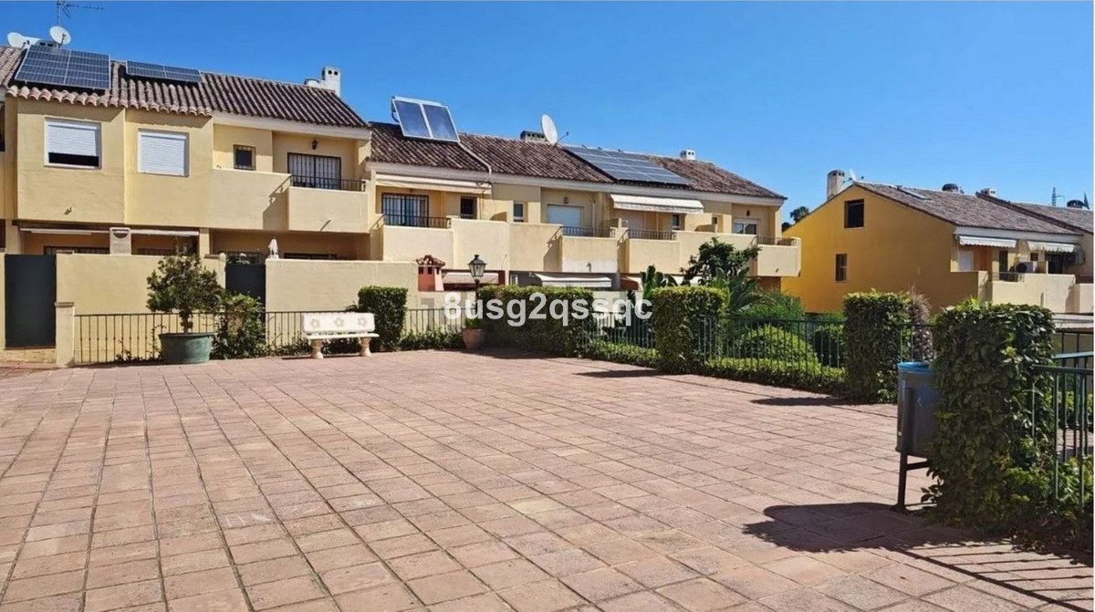 Descubre tu nuevo hogar en El Padron, Estepona! Este encantador chalet adosado ofrece una combinación perfecta de comodidad y estilo en una ubicación inmejorable. Con 150 m² construidos, esta vivienda cuenta con tres amplios dormitorios con armarios empotrados, dos baños completos y un aseo de invitados. La cocina está completamente equipada y dispone de un práctico lavadero. Disfruta de la tranquilidad de una zona residencial con excelente relación calidad-precio, justo enfrente de Laguna Village y con fácil acceso al paseo marítimo. La casa está amueblada y cuenta con doble acristalamiento, asegurando confort durante todo el año. Relájate en el patio parcialmente cubierto en la parte delantera o en el más grande en la parte trasera, ambos perfectos para disfrutar del clima mediterráneo. La terraza de 30m² orientada al sur, accesible desde la sala de estar y el comedor, es ideal para cenas al aire libre o momentos de relax. Además, el dormitorio principal ofrece su propia terraza privada con vistas al sur.La comunidad ofrece un jardín bien cuidado y una piscina para disfrutar en los días soleados. No te preocupes por el estacionamiento, ya que hay espacio propio y para invitados. Todo esto, a pocos pasos de tiendas y la playa, en una ubicación estratégica entre Estepona y Marbella. Construida en 2005, esta propiedad de segunda mano se encuentra en buen estado y cuenta con calefacción eléctrica de bomba de frío/calor. ¡No pierdas la oportunidad de visitar este magnífico hogar!~