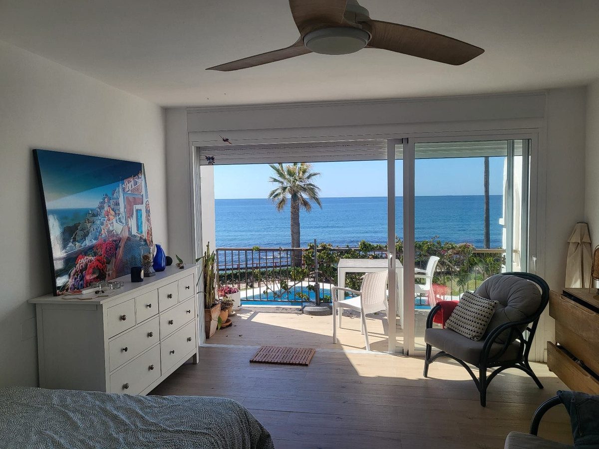 ¡Descubre tu nuevo hogar frente al mar! Esta impresionante vivienda en primera línea de playa te ofrece la combinación perfecta de lujo y comodidad. Con una superficie de 143 m² distribuidos en tres plantas, disfrutarás de espacios amplios y luminosos gracias a su orientación sur. En la planta baja, el salón comedor se integra con una moderna cocina equipada, ideal para reuniones familiares. Además, cuenta con un aseo de cortesía para mayor conveniencia.Sube a la primera planta y encuentra dos dormitorios, cada uno con su propio baño, garantizando privacidad y confort. La joya de la casa es su planta solarium, que incluye una habitación de servicio y una espectacular terraza de 25 m², perfecta para disfrutar del sol y las vistas al mar.Este chalet no solo ofrece un estilo de vida relajado junto al mar, sino que también cuenta con todas las comodidades modernas: aire acondicionado, alarma instalada y una plaza de parking incluida. Además, tendrás acceso a una piscina y jardín comunitario para disfrutar del buen tiempo. ¡Ven a visitarlo y enamórate!~