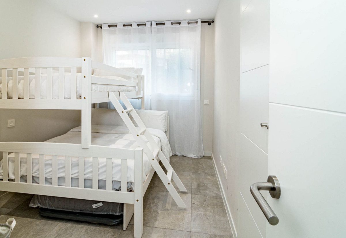 Nuevo en el mercado, estupendo apartamento en planta baja de 3 dormitorios y 2 baños, completamente amueblado y listo para entrar a vivir. Dispone de 2 terrazas una cubierta y otra con opuesta orientación descubierta. Además incluye una plaza de garaje y un trastero. Ubicado en una urbanización cerrada con piscina, jardines, kids area, outdoor gym, zona de chill out y barra comunitarias. Su localización es estupenda al situarse a unos metros del Paseo Marítimo de Marbella y a un paseo a la popular Plaza de los Naranjos del centro histórico de Marbella.Su distribución: al entrar nos encontramos con un amplio salón con cocina abierta ambas estancias se comunican con la terraza cubierta en el lado derecho, hacia la izquierda tenemos un pasillo donde encontramos en el lado izquierdo el baño de invitados, justo en frente un dormitorio con armarios empotrados, seguimos el pasillo y nos encontramos con otro dormitorio con armarios y al fondo se encuentra el dormitorio principal con una zona de vestidor, el baño en suite y acceso a la terraza descubierta grande. Todas las estancias son exteriores y sus ventanas dan hacia las terrazas privadas. La vivienda dispone de mucho almacenaje; además de los armarios de los dormitorios y el vestidor, la vivienda dispone de armario en la entrada y en el pasillo que conecta los dormitorios.Perfecto para disfrutar de la playa y la vida costera. Ideal para familias o grupos que busquen comodidad y cercanía al mar. ¡No te lo pierdas!~