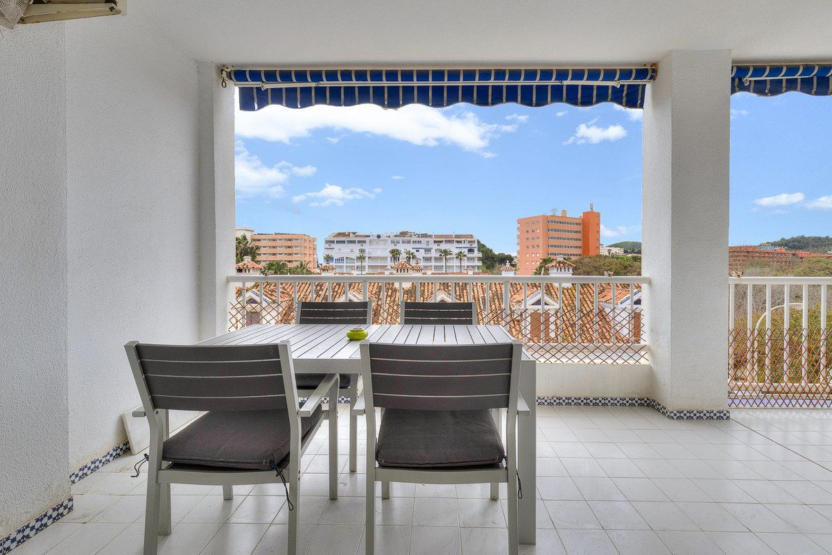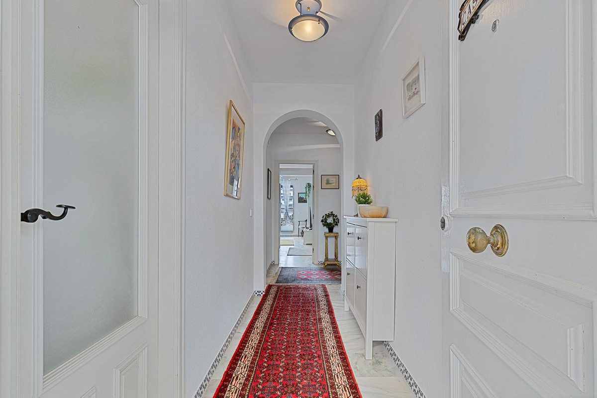 Amplio piso en segunda línea de playa en la zona oeste de Fuengirola. El piso tiene una buena terraza orientada al suroeste con vistas al mar. Muy buena ubicación a poca distancia del centro de Fuengirola, del centro comercial Miramar, supermercados, restaurantes, etc.El piso consta de hall de entrada, lavadero, tres amplios dormitorios, dos baños, uno de ellos en suite, salón y cocina abierta. El salón y el dormitorio principal están equipados con aire acondicionado y tienen acceso a la terraza. La urbanización cuenta con piscina comunitaria.~