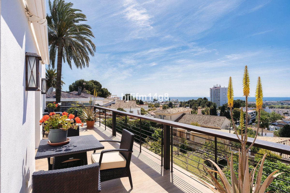 Esta encantadora casa en venta está idealmente situada en el borde de la colina entre Nueva Andalucía y San Pedro, ofreciendo impresionantes vistas panorámicas hacia el este, sur y oeste. Ubicada en una de las calles más codiciadas de Nueva Andalucía, la vivienda se beneficia tanto de un entorno tranquilo como de la proximidad a todas las comodidades de la zona, incluyendo campos de golf de clase mundial, restaurantes de renombre, tiendas, playas y mucho más.Al entrar a la casa, se le da la bienvenida a un vestíbulo luminoso y espacioso con grandes ventanas que inundan el espacio de luz natural. El vestíbulo también cuenta con armarios empotrados. Justo al frente, el área de estar y comedor de concepto abierto crea un ambiente amplio y acogedor, destacado por una hermosa chimenea abierta y una llamativa escalera. Las vistas desde este nivel son impresionantes, con panorámicas que se extienden hacia el oeste. La sala de estar conduce a una terraza de buen tamaño, perfecta para cenar al aire libre y relajarse, con espacio suficiente para un área de comedor y un acogedor salón.En este nivel, también encontrará una cocina recién renovada, una oficina/dormitorio versátil y un baño moderno. Además, hay acceso al garaje, que tiene capacidad para un coche.La planta inferior cuenta con tres cómodos dormitorios dobles y tres baños. También hay una práctica sala de lavandería, espacio de almacenamiento adicional y mucho espacio para personalización, ya sea que desee crear un gimnasio, un cine en casa o simplemente necesite almacenamiento extra. Este nivel también proporciona acceso al jardín privado y al área de la piscina, donde podrá relajarse en paz. El jardín incluye un pequeño huerto, árboles frutales y una terraza cubierta, ideal para disfrutar del estilo de vida mediterráneo.La ubicación de esta propiedad ofrece lo mejor de ambos mundos: un refugio tranquilo con vistas incomparables y fácil acceso al vibrante estilo de vida de Nueva Andalucía, convirtiéndola en una oportunidad excepcional en una de las áreas más deseables de Marbella.~