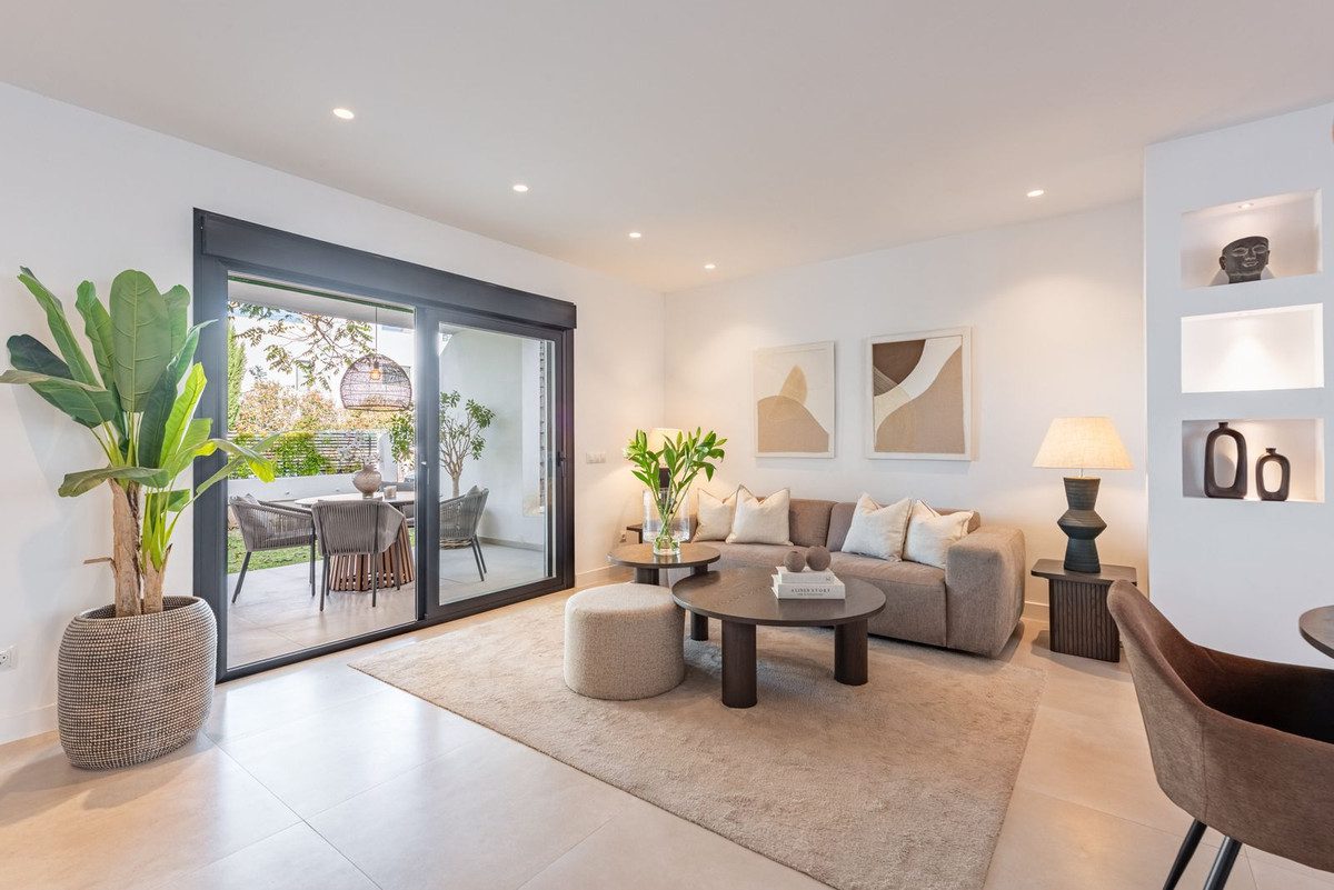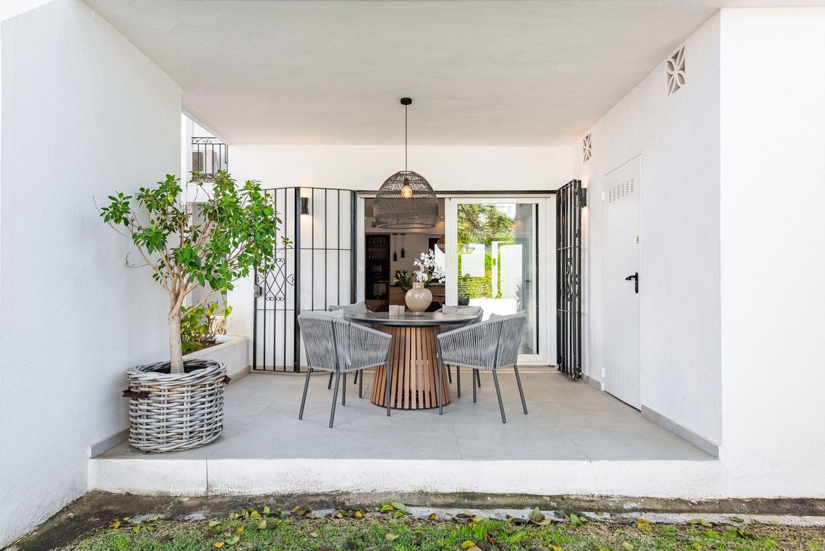 Bienvenido a este elegante y totalmente renovado apartamento en planta baja, ubicado en la codiciada comunidad de Andalucía Garden Suites, una de las más establecidas y populares en Nueva Andalucía. El apartamento cuenta con dos dormitorios decorados con buen gusto y dos baños modernos, todo dentro de una distribución de planta abierta y amueblado con piezas de diseño cuidadosamente seleccionadas que crean una atmósfera armoniosa y elegante.La propiedad dispone de una terraza orientada al oeste y un jardín en la parte delantera, perfectos para disfrutar del sol de la tarde y las cálidas noches. Como valor añadido, hay un luminoso y encantador patio interior conectado directamente a la cocina, que ofrece un espacio maravilloso para cenar y entretenerse bajo el cielo andaluz.Andalucía Garden Suites tiene acceso a todas las instalaciones del Andalucía Garden Club, conocido por su área segura y bien mantenida con grandes jardines, pista de tenis, una generosa zona de piscina y una ubicación inmejorable. A poca distancia a pie de Puerto Banús, el mar y el popular Centro Plaza, vivirás aquí cerca de todo, perfecto tanto para residencia permanente como para casa de vacaciones.~