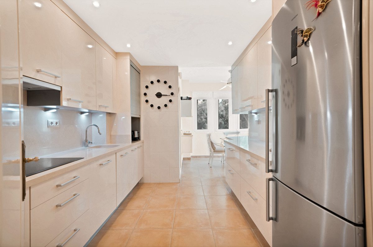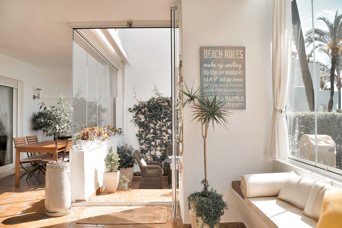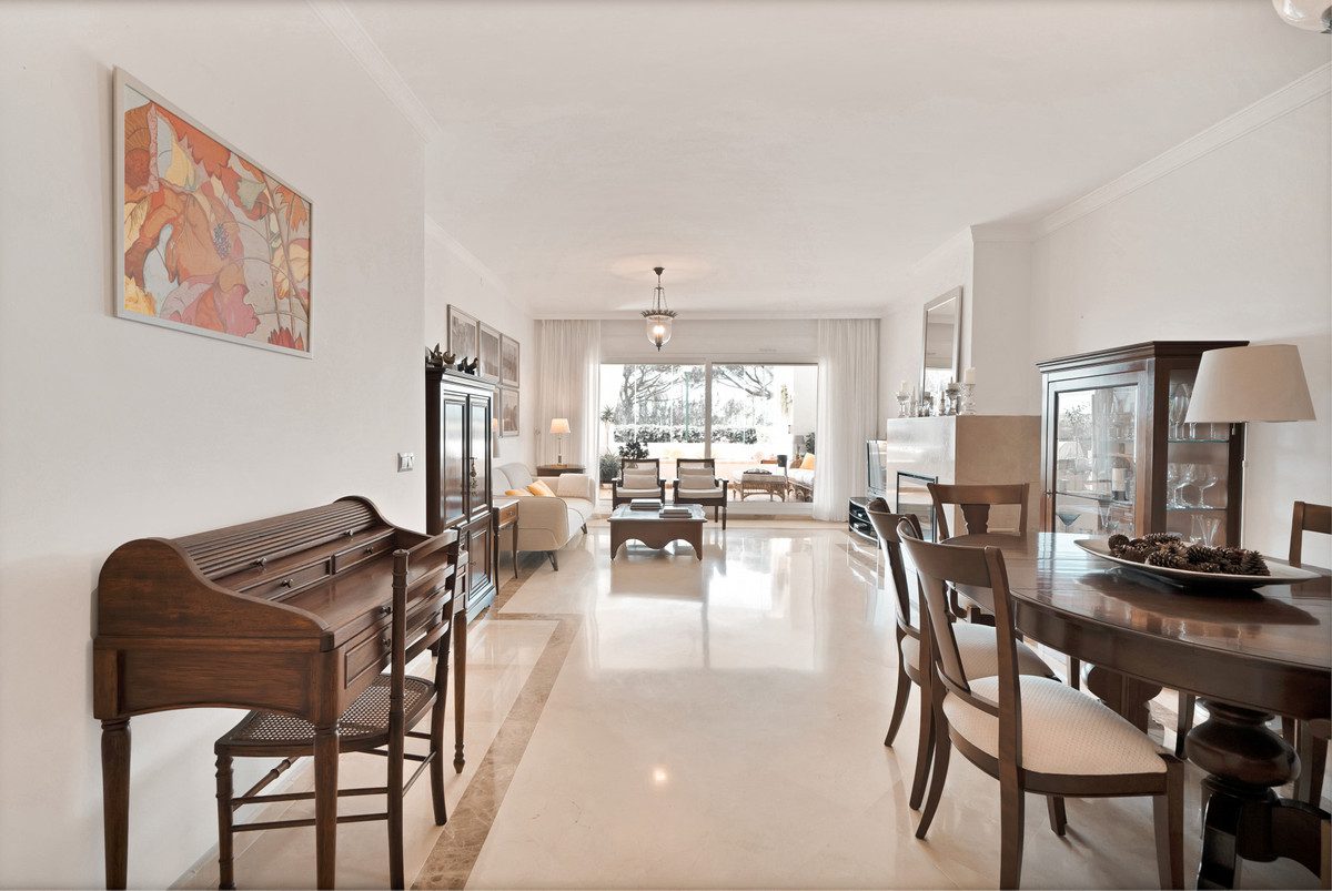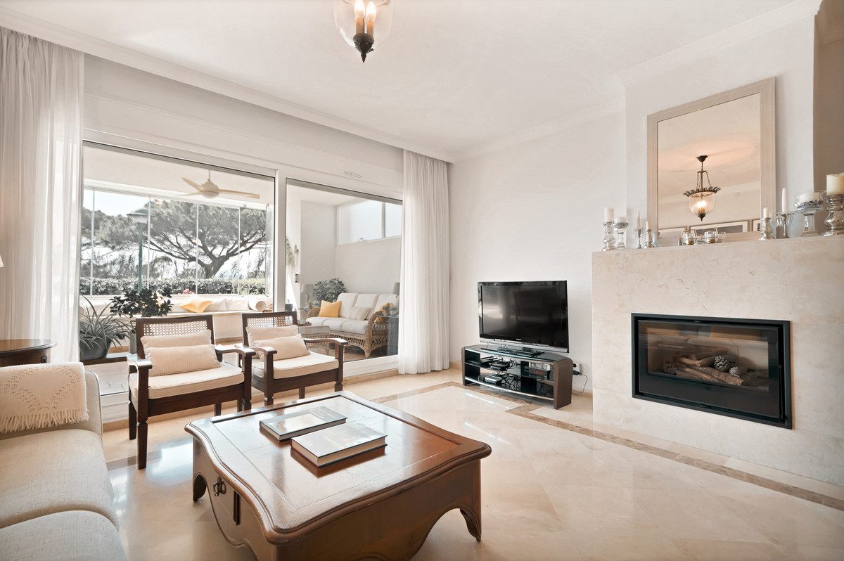 Presentamos una oportunidad excepcional de adquirir un apartamento de lujo en una de las comunidades frente al mar más codiciadas.Este impresionante apartamento en planta baja, orientado al suroeste, ofrece 132 m² de elegante espacio interior y una amplia terraza de 30 m², además de un jardín privado que brinda vistas tanto al mar como al campo de golf.Características Principales:Ubicación Privilegiada: Situado en una de las urbanizaciones más exclusivas en primera línea de playa, con acceso directo al mar y al paseo marítimo.Espacios Amplios y Luminosos: Dispone de un amplio salón-comedor con chimenea, ideal para disfrutar en familia o con invitados. Los grandes ventanales y el acceso directo al jardín privado aportan una atmósfera luminosa y abierta, con vistas despejadas al mar y al campo de golf.Jardín Privado y Terraza: Disfruta del aire libre con estilo gracias al jardín privado, perfecto para cenas al aire libre o simplemente relajarse sintiendo la brisa marina. La generosa terraza ofrece un espacio adicional para disfrutar del entorno natural.Dos Dormitorios en Suite: Ambos dormitorios cuentan con baño privado y armarios empotrados, ofreciendo privacidad, confort y acabados de alta calidad. El diseño ha sido cuidadosamente pensado para una experiencia de vida óptima.Comodidades Modernas: Calefacción por suelo radiante en los baños, aire acondicionado frío/calor, y persianas eléctricas en todas las ventanas para mayor comodidad y seguridad.Trastero y Plaza de Garaje: Incluye una plaza de aparcamiento asignada y un práctico trastero para mayor funcionalidad.Zonas Comunes Exclusivas: La urbanización ofrece servicios de estilo resort, incluyendo dos piscinas, exuberantes jardines tropicales y seguridad 24 horas para total tranquilidad.Con una ubicación inmejorable y características de primer nivel, este apartamento representa una oportunidad única para quienes buscan lo mejor en estilo de vida junto al mar.Contáctanos hoy mismo para concertar una visita privada y descubrir el auténtico lujo costero.~