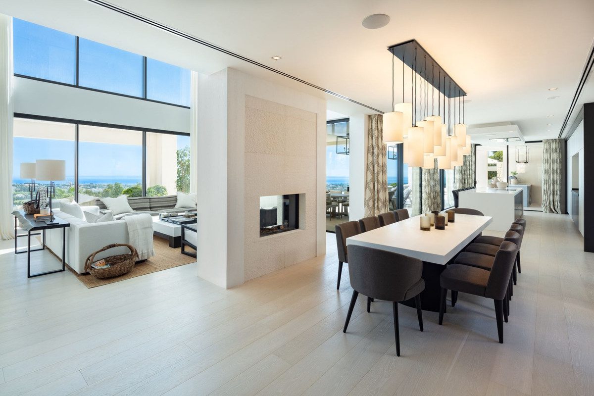 A medida y nueva casa contemporánea, situada en una de las últimas parcelas disponibles en El Herrojo, dentro del complejo La Quinta Golf amp; Country Club, que ofrece alojamiento máximo en una ubicación privilegiada. La villa ha sido construida y diseñada para las especificaciones de la más alta calidad, garantizando un estilo resort viviendo con vistas épicas al mar Mediterráneo. Villa Leo 2 es una verdadera casa de vanguardia de proporciones majestuosas y interiores prístinos. La villa cuenta con excelentes características de lujo, incluyendo: techos altos, ventanas de suelo a techo, terrazas expansivas, piscina infinita, cocina al aire libre y vistas al mar. La villa le da la bienvenida en un impresionante hall de entrada, que conduce a un amplio y luminoso salón. La villa ofrece un diseño de planta abierta, donde se conectan sala de estar, comedor y cocina. El comedor tiene vistas a un magnífico patio interior. Cada dormitorio es único y acogedor, con vistas incomparables al mar y a la montaña. La suite principal es un espacio confortable y acogedor, con un dormitorio grande, baño elegante, impresionante walk-in closet y una impresionante terraza soleada. La propiedad ofrece un espacio sótano de última generación con sala de televisión, cocina adicional, gimnasio totalmente equipado, sauna, zona de entretenimiento y sala de cine. Esta es una de las casas de lujo más impresionantes disponibles en La Quinta.~
