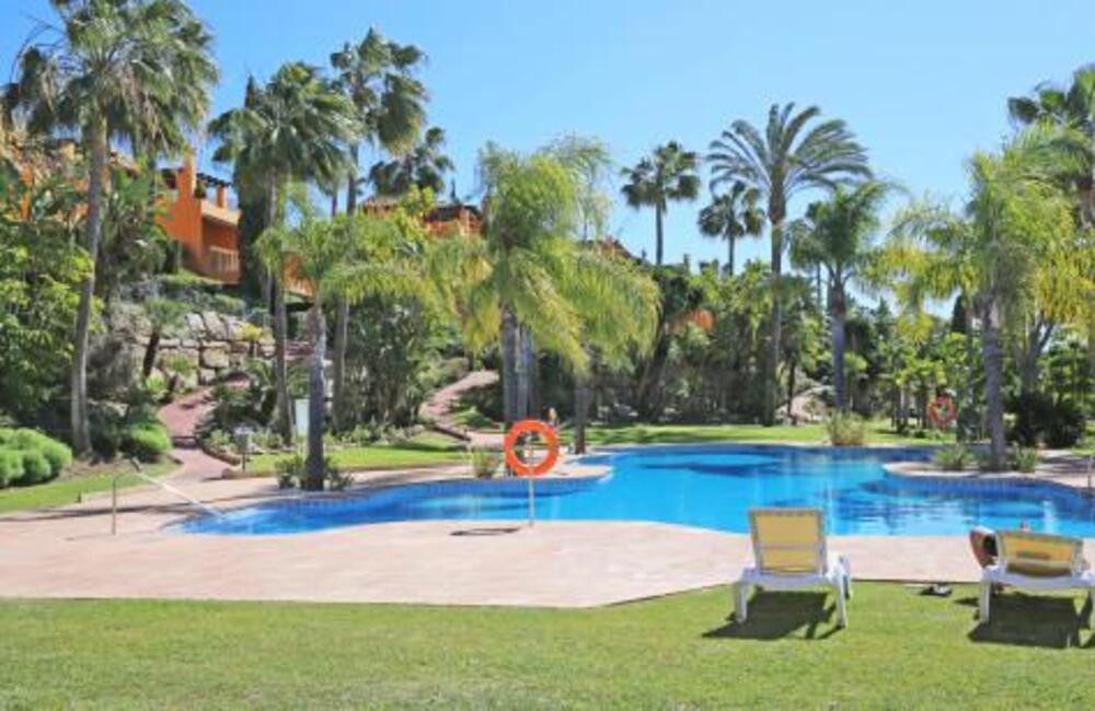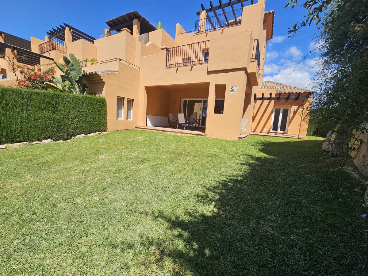 Se trata de una pareada de cuatro dormitorios en la comunidad cerrada de Paraiso Bellevue, ubicada en El Paraíso en la Nueva Milla de Oro. La propiedad tiene una orientación sur y se encuentra a poca distancia de la playa y de diversas comodidades de ocio.El complejo cerrado cuenta con impresionantes jardines y una amplia piscina comunitaria de estilo laguna. En el nivel principal de la casa, hay una zona de estar-comedor con chimenea y puertas de patio que conducen a la terraza, al jardín privado. También se encuentra una cocina abierta con barra de desayuno, una suite de invitados con acceso a la terraza y jardín, y acceso al nivel inferior de la propiedad.El nivel inferior incluye un lavadero, una zona de almacenamiento y un garaje privado. En la primera planta, encontrarás la suite principal con acceso a una gran terraza privada con vistas a la piscina y al mar, así como dos dormitorios con baño compartido, ambos con terrazas privadas. Además, hay un amplio solárium que ofrece vistas al mar y a la montaña.La propiedad también cuenta con características adicionales como armarios empotrados, aire acondicionado frío y caliente, y calefacción por suelo radiante en los baños. En resumen, parece ser una casa espaciosa y bien equipada con atractivas características y comodidades.~