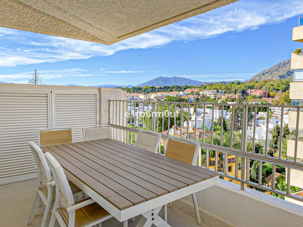 Apartamento recientemente reformado en segunda línea de playa, de muy alto nivel, listo para entrar a vivir. Este fabuloso apartamento, amplio y luminoso, es una propiedad perfecta para vivir o invertir. La ubicación es ideal, a solo tres minutos a pie de la playa y del Paseo Marítimo de Marbella. A un corto paseo del centro de Marbella y a 5 minutos de Puerto Banús. Con un diseño de planta abierta, la cocina totalmente equipada fluye sin esfuerzo hacia el comedor y la sala de estar. Los dos dormitorios dobles con baño privado están distribuidos a ambos lados de la sala de estar, lo que garantiza la privacidad y da acceso a ambos dormitorios a la amplia terraza. La terraza tiene una zona de estar y un comedor al aire libre con capacidad para seis personas y disfruta de vistas panorámicas a la Milla de Oro y a las montañas. La comunidad tiene hermosos y tranquilos jardines y dos piscinas. Hay estacionamiento comunitario para residentes.~